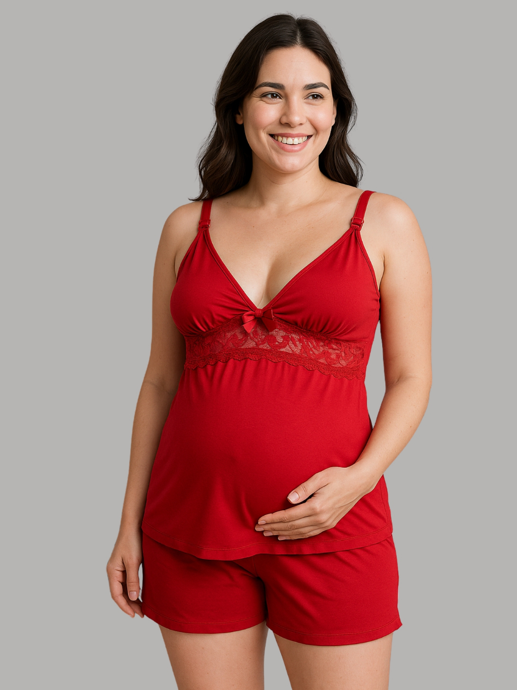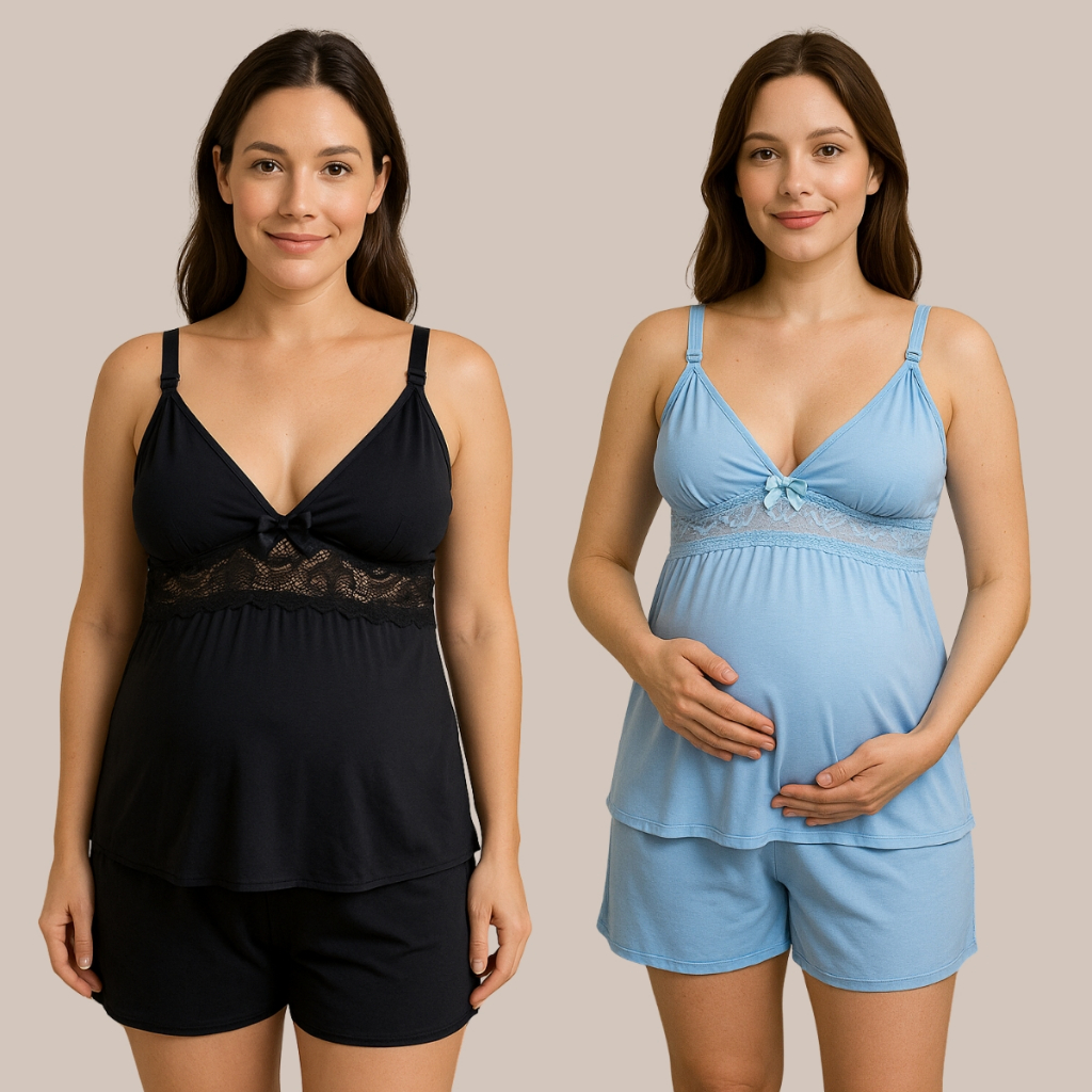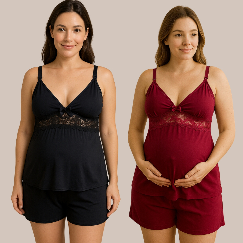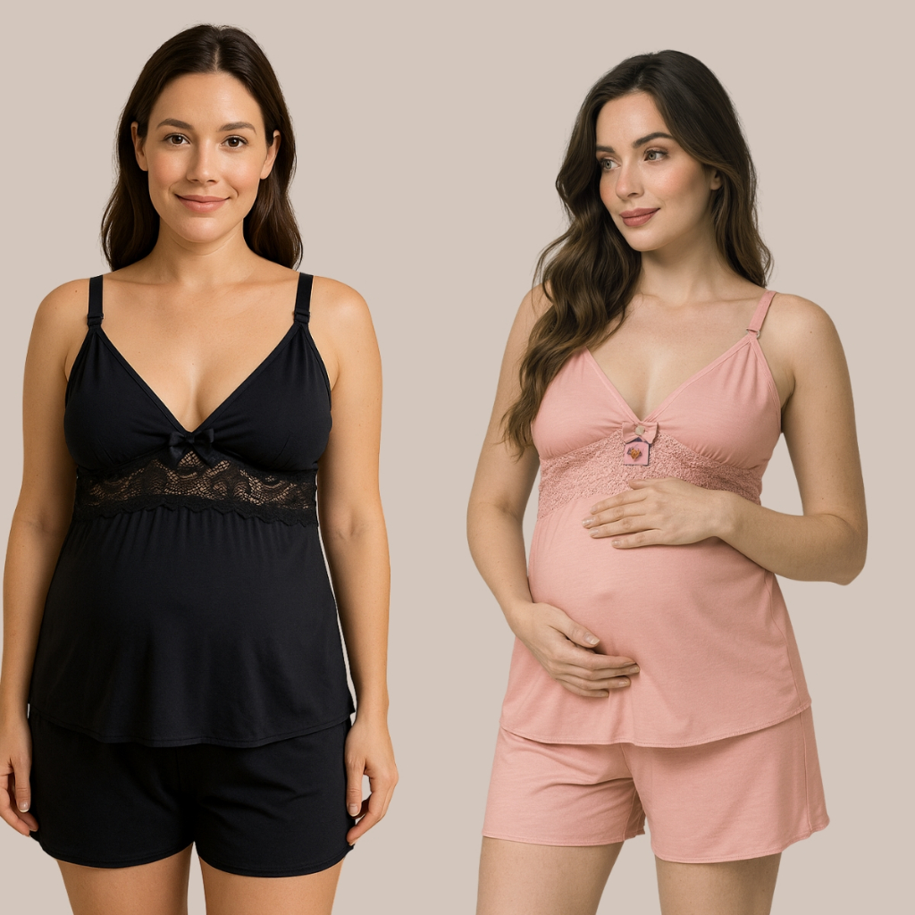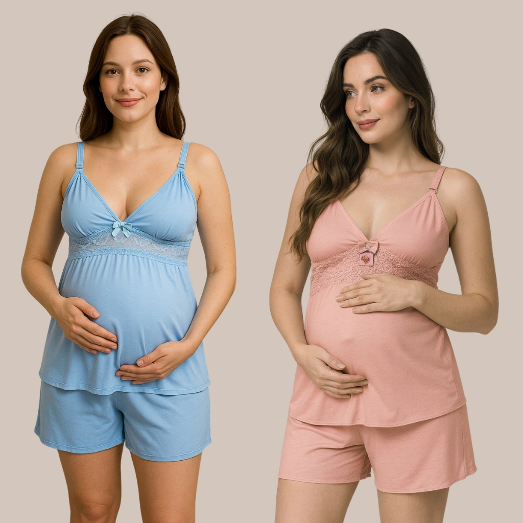 Kit de 02 Short Doll CURTO Amamentação com Abertura em Clique e Detalhes em Renda.
