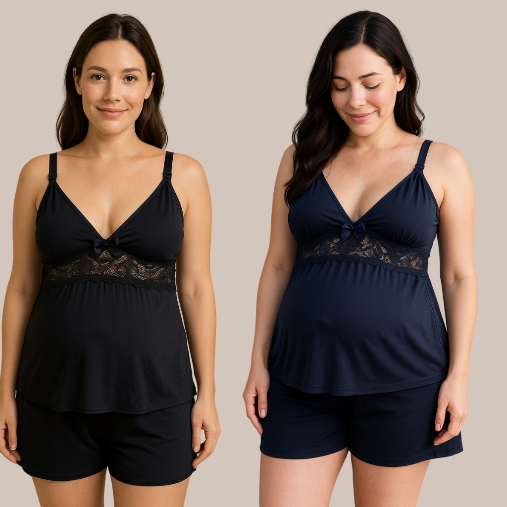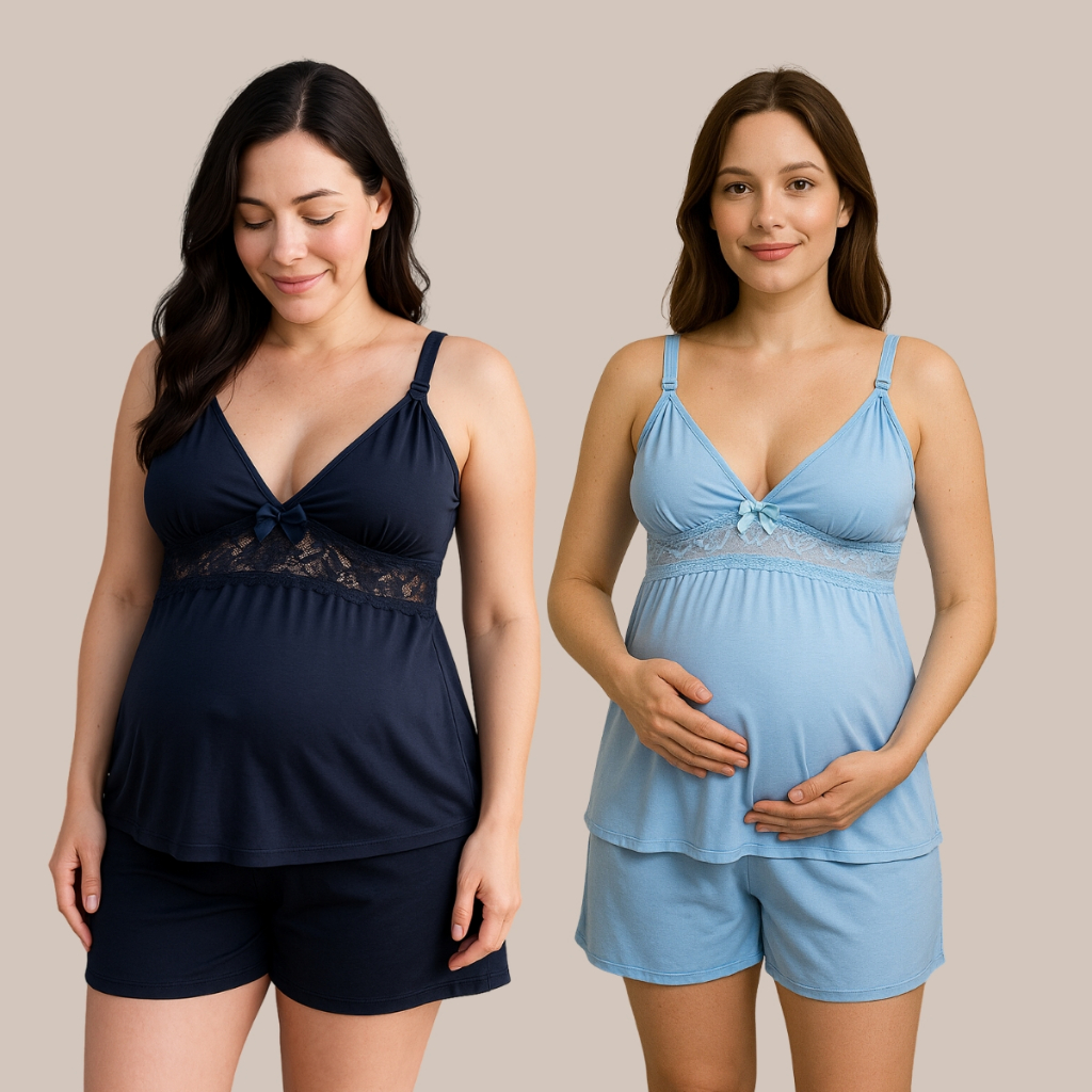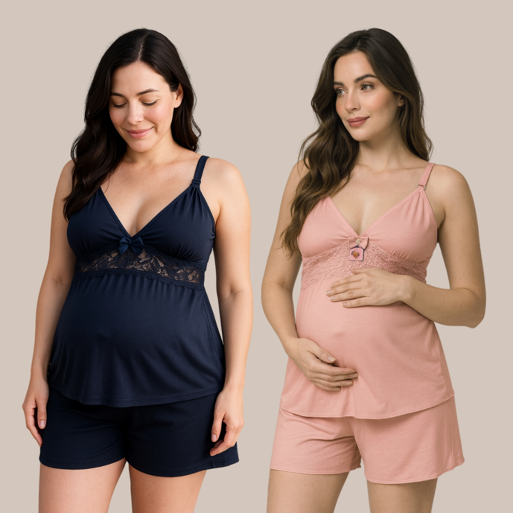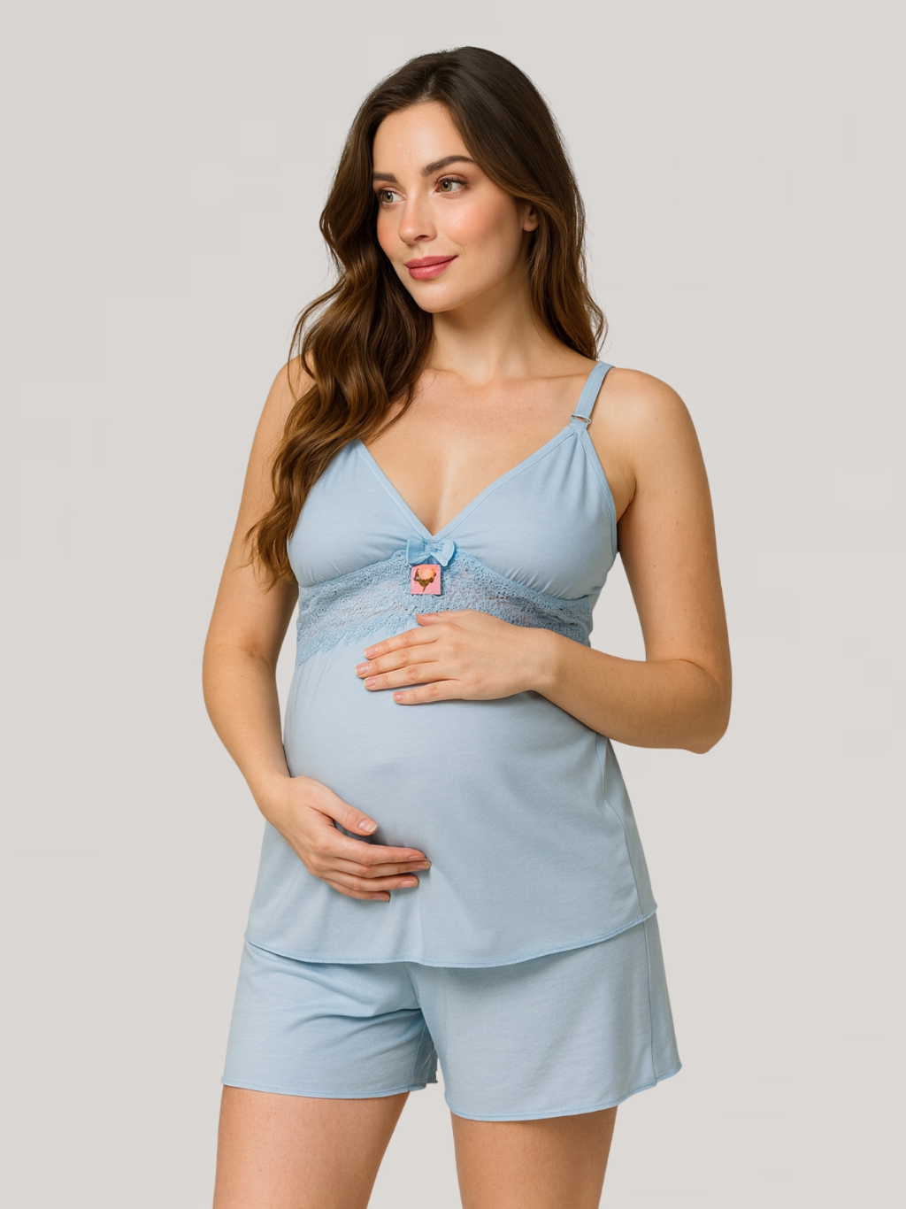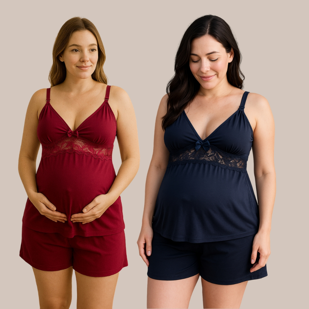 Kit de 02 Short Doll CURTO Amamentação com Abertura em Clique e Detalhes em Renda.