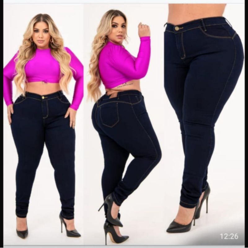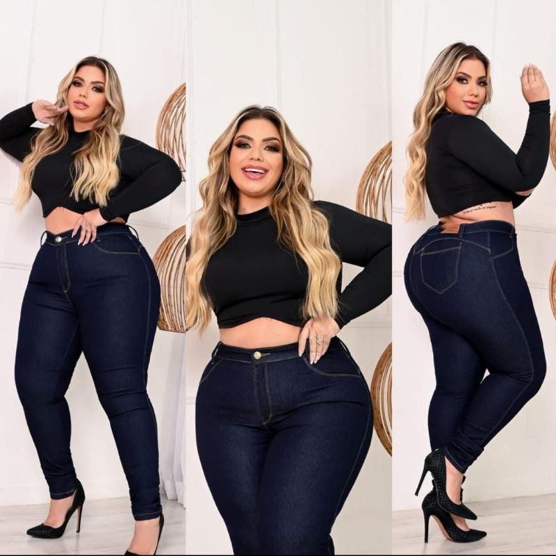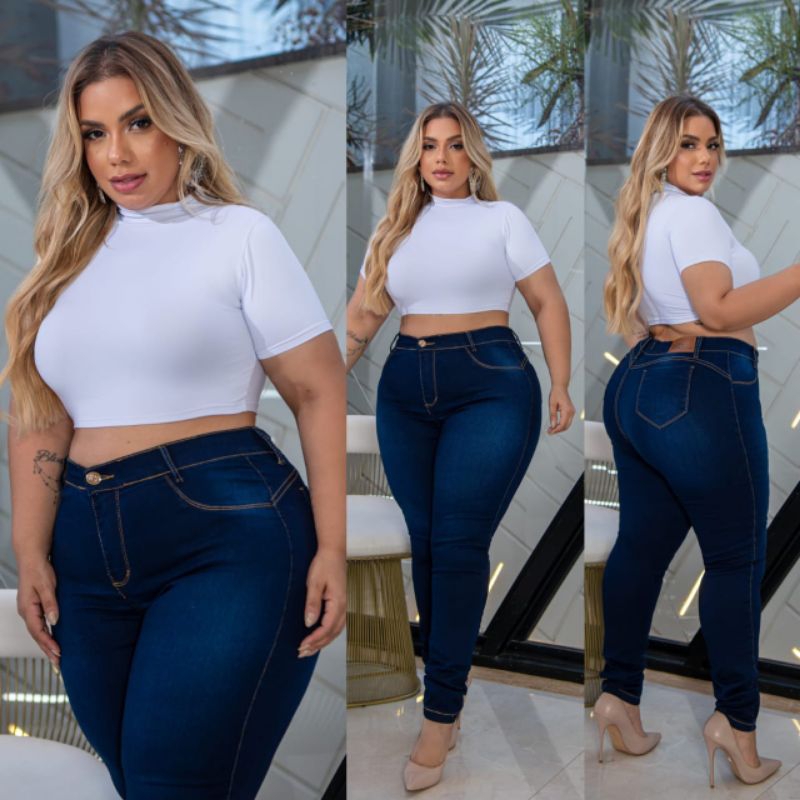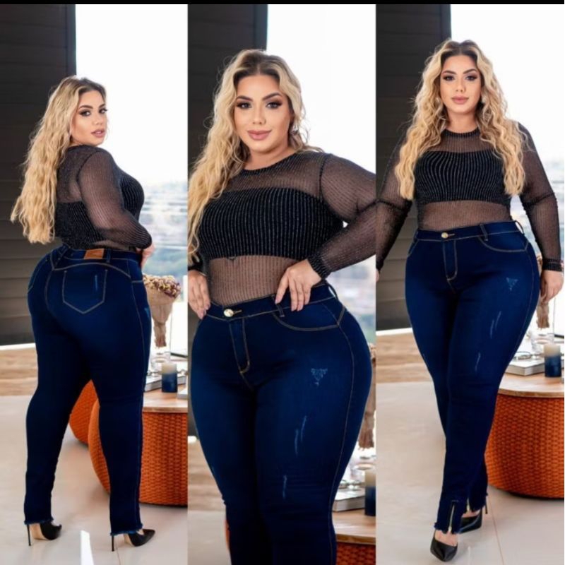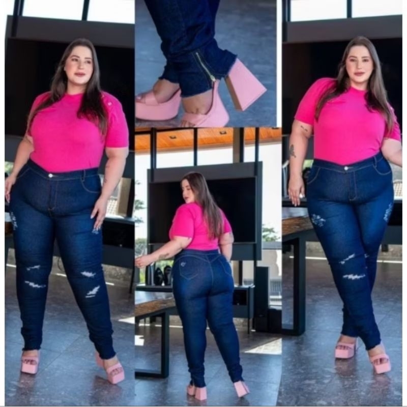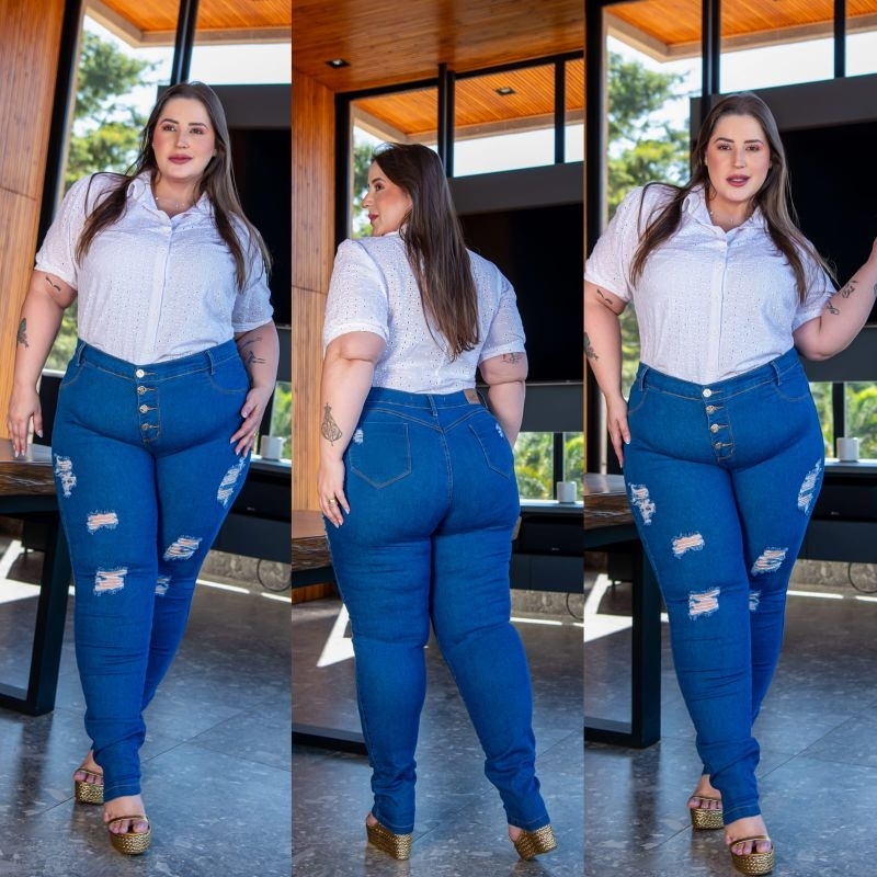 Calça Jeans Plus Size Rasgada 4 Botões skinny Lycra Cos Alto Elastano 48 ao 66