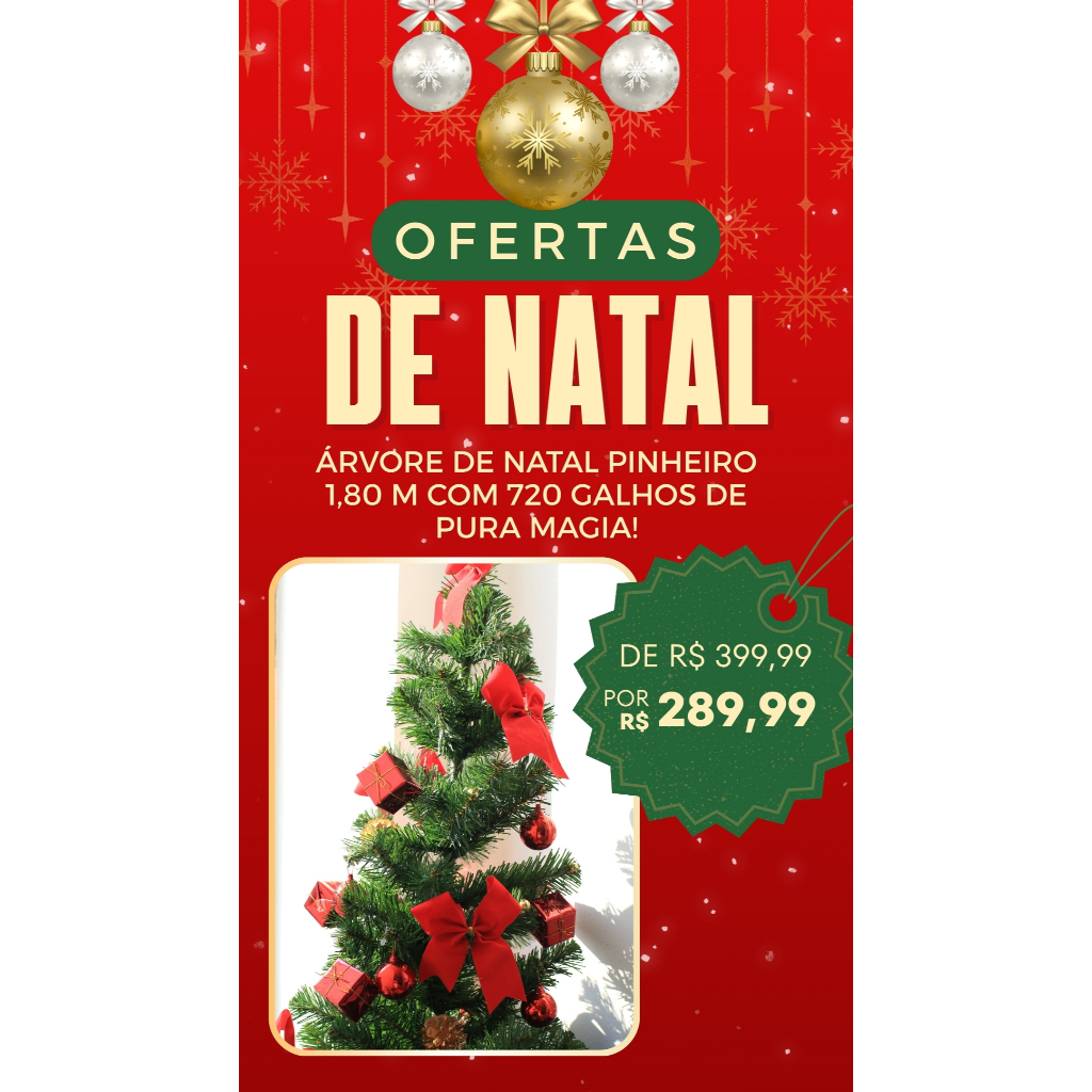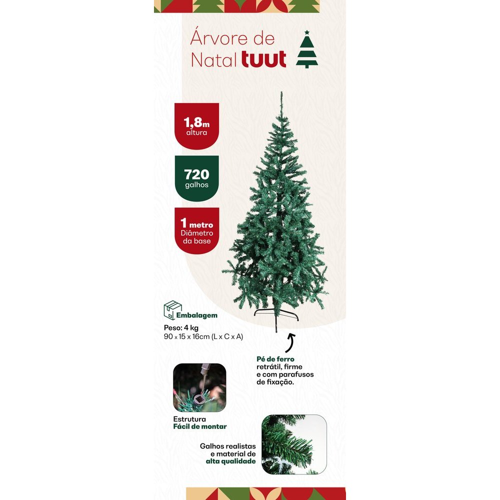 Árvore De Natal Grande Pinheiro 1,80m 720 galhos Ajustável Hastes Flexíveis Decoração Cheia Tradicional Base reforçada
