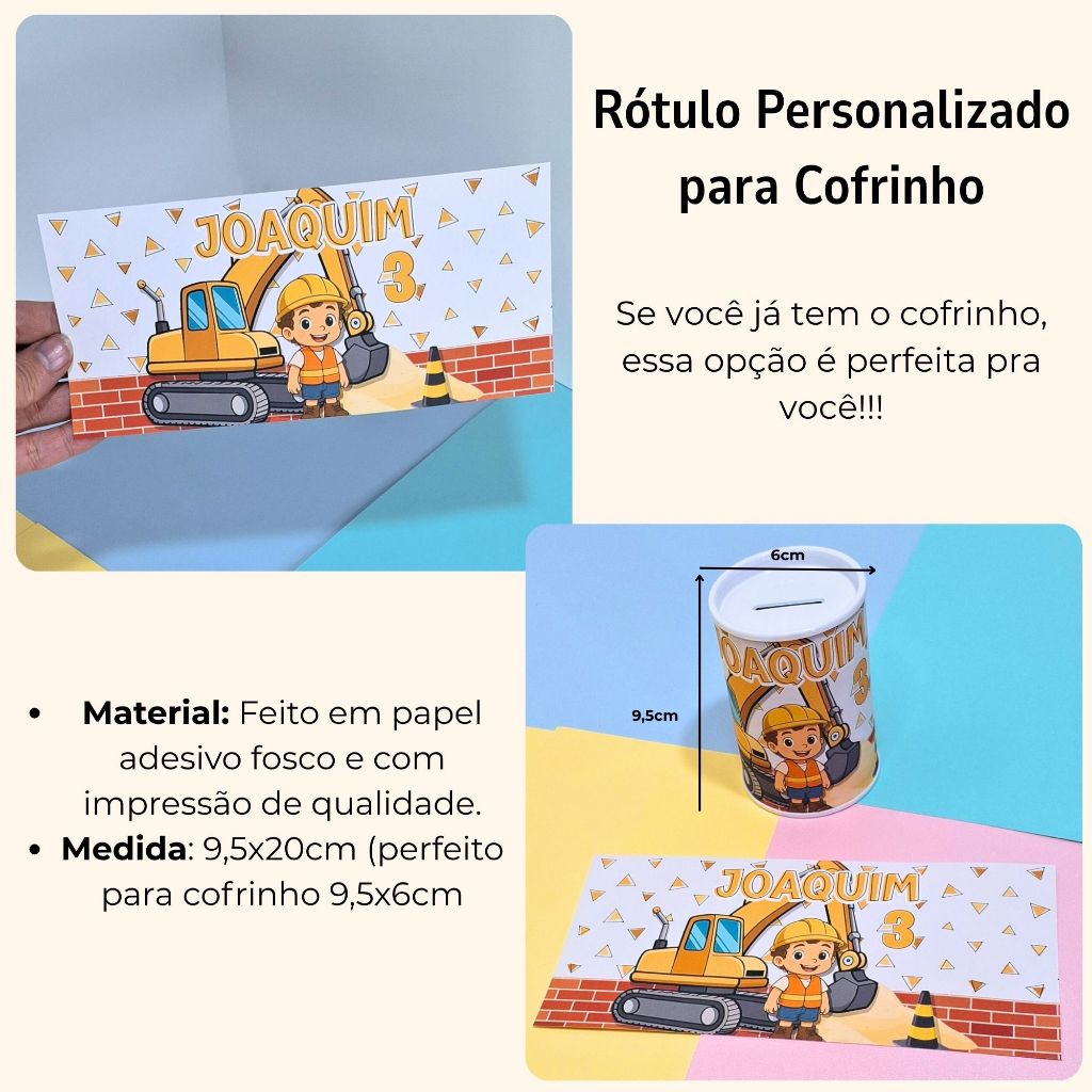 Rótulo Adesivo Personalizado para Cofrinho | Papel Adesivo de Fácil Aplicação | 9,5x20cm | Fazemos em Qualquer Tema