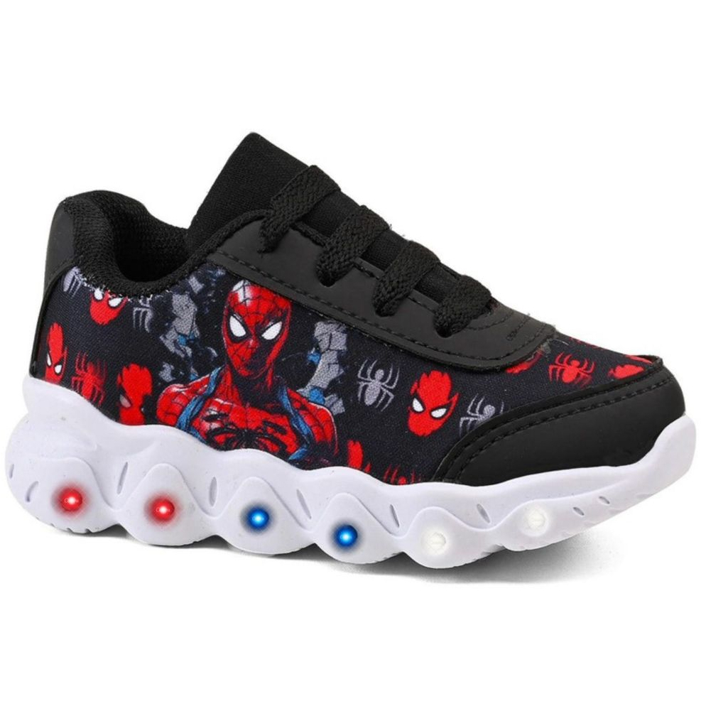 Tênis Infantil Menino Homem Aranha Casual Com Led Super Confortável Lançamento