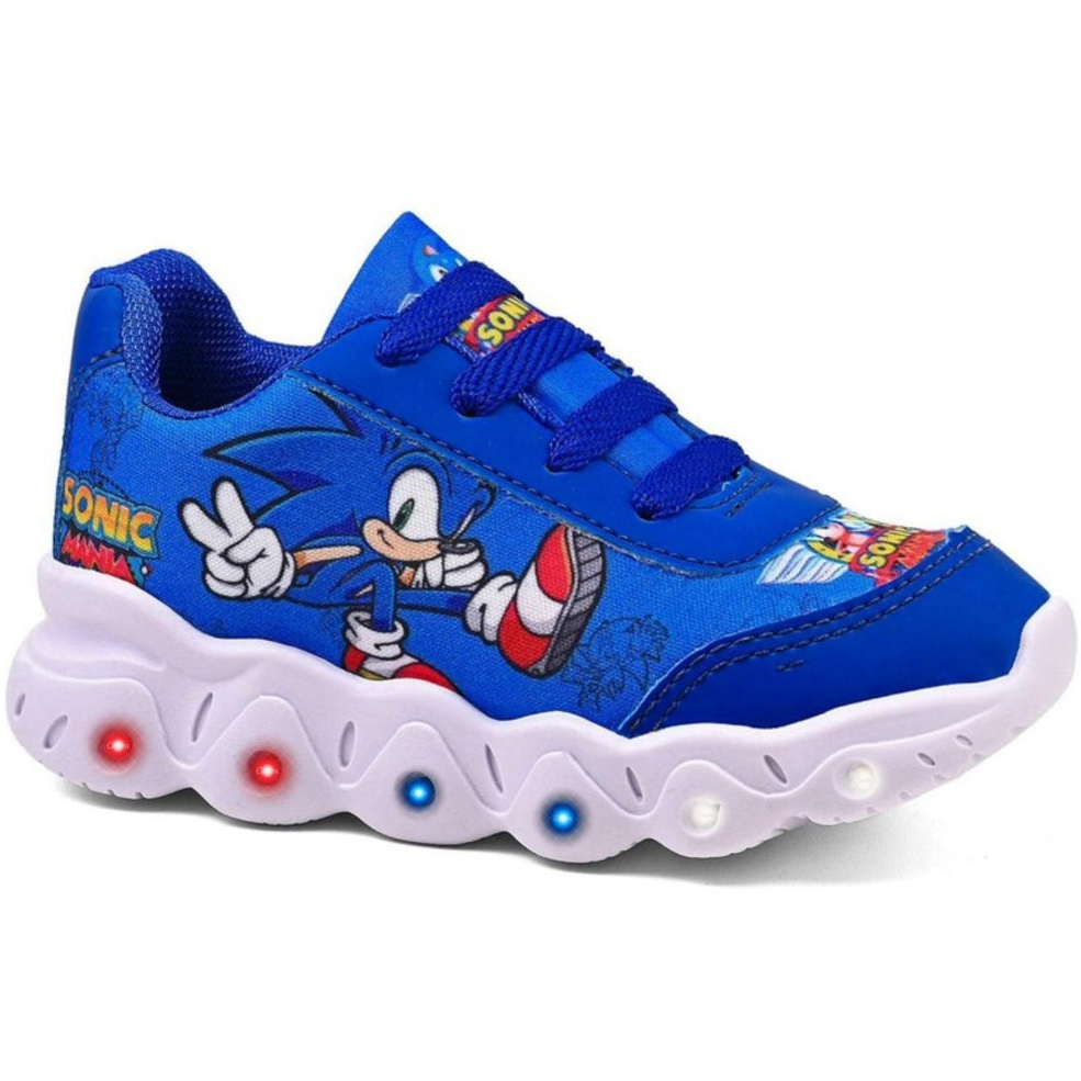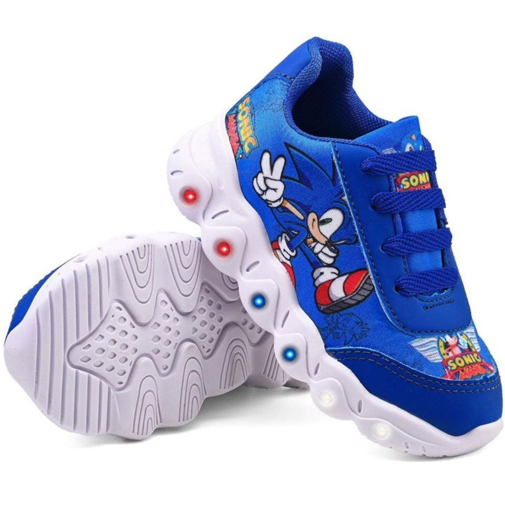Kit Tênis Infantil Sonic Menino Azul Casual Com Led + Chinelo Infantil