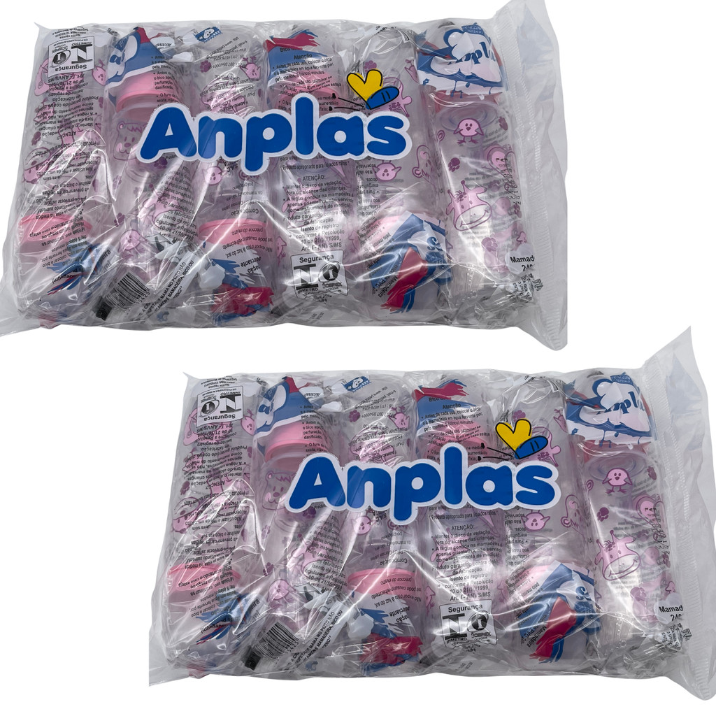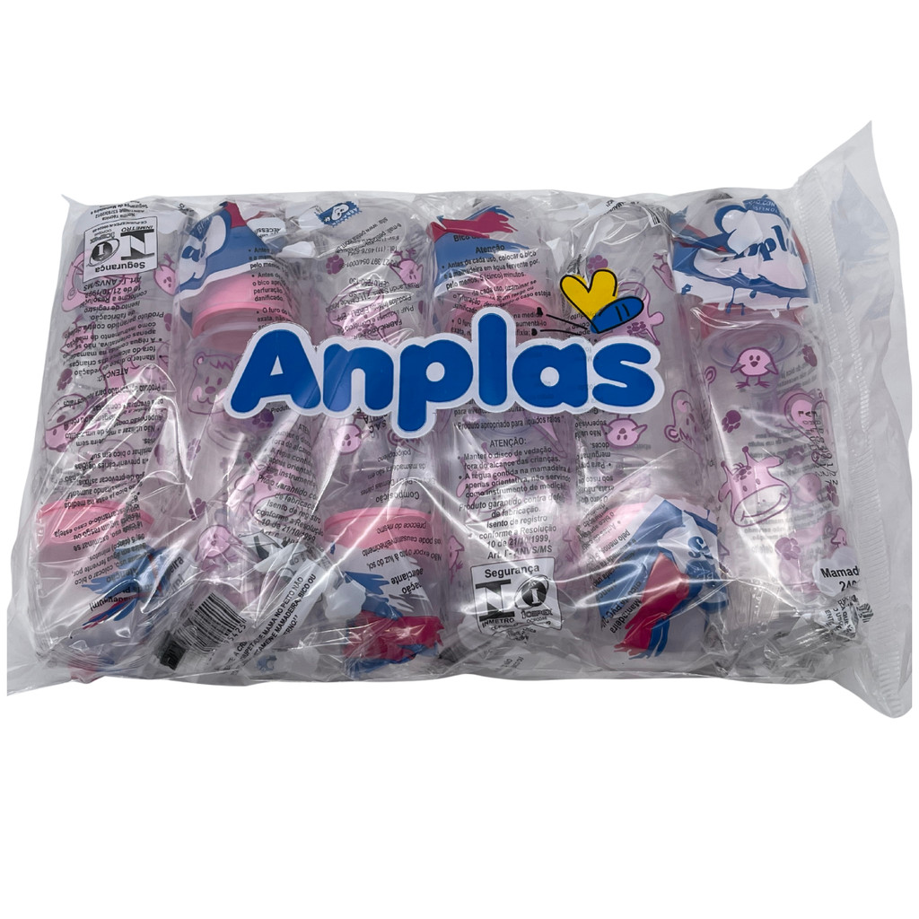 Kit 12 Mamadeiras Atacado Anplas 240ml Bico Redondo