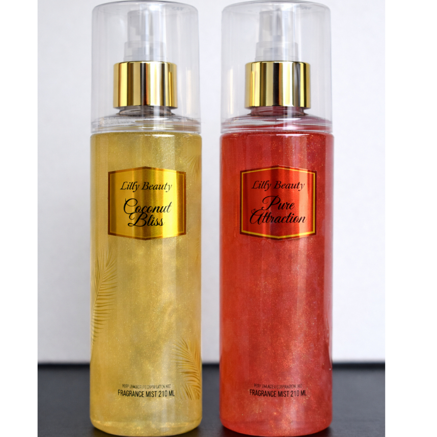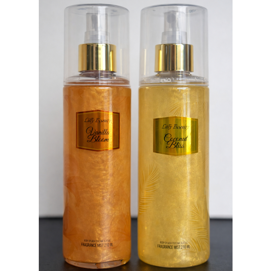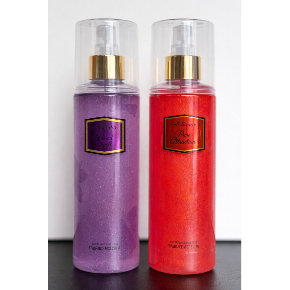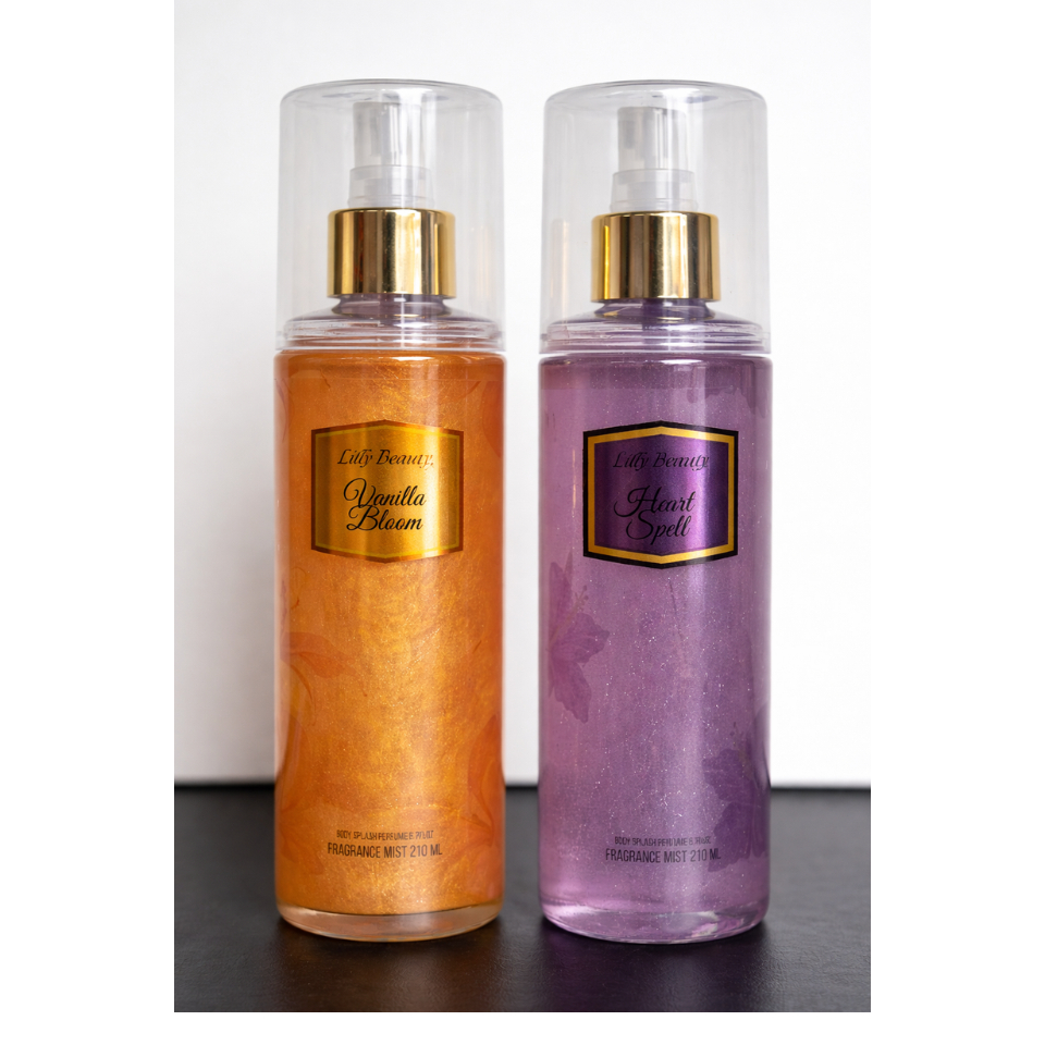 Kit 2 body splash com glitter loção corporal Lilly Beauty perfume luminoso 210 ml varias fragrancias