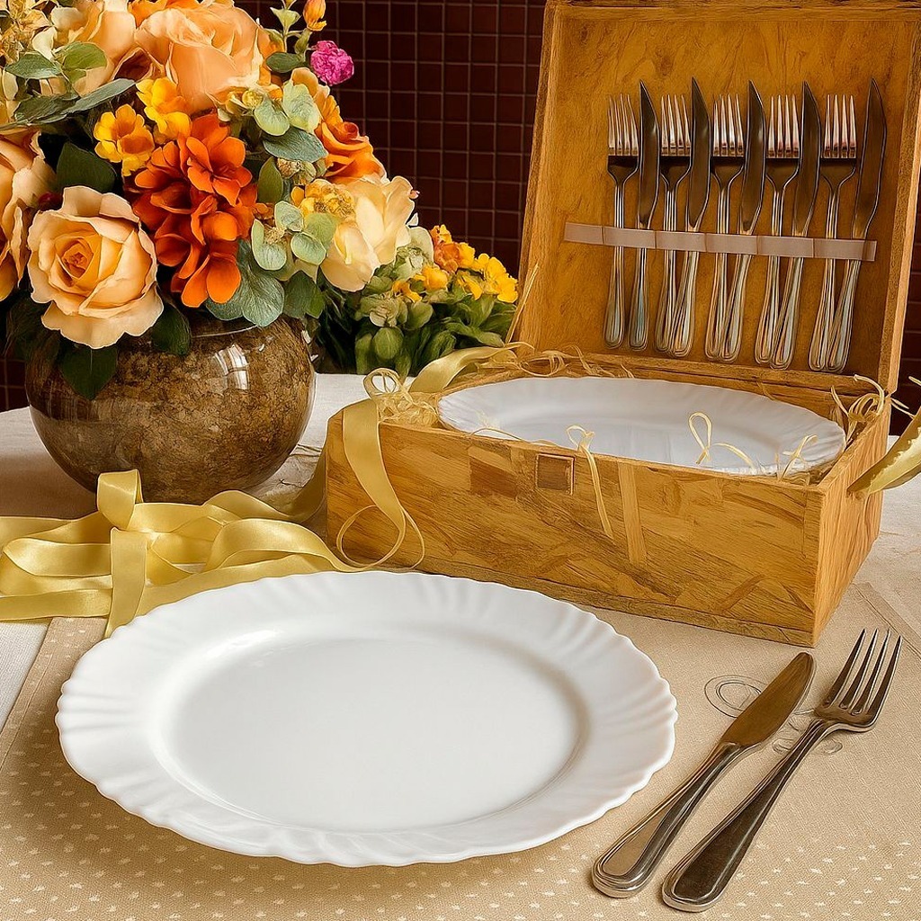 Kit Jantar Duralex Opaline 12 Peças Pratos Pétala + 6 Copos Zumba Vidro Temperado Duralex