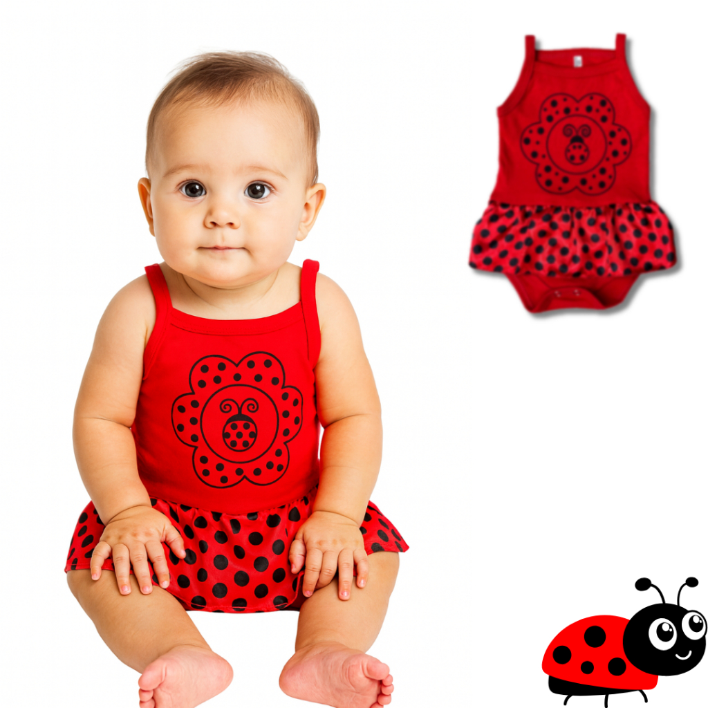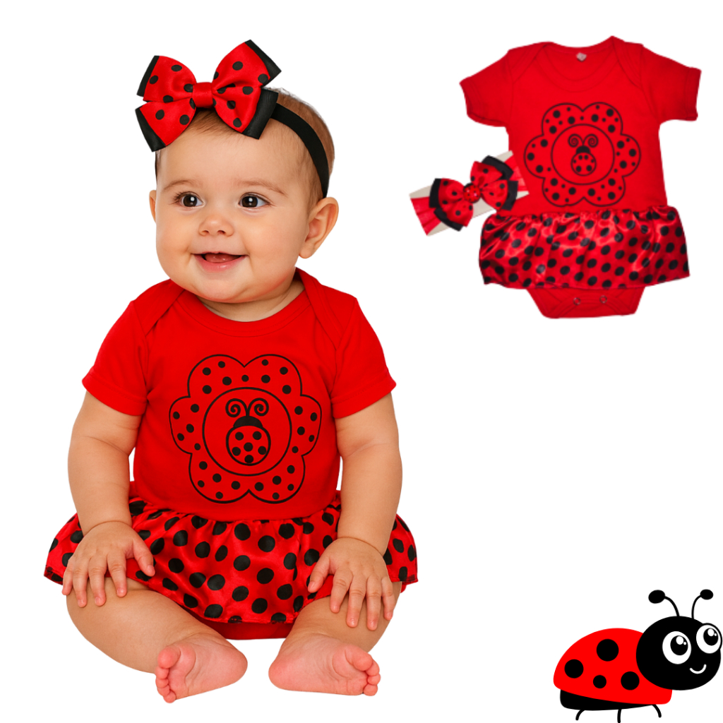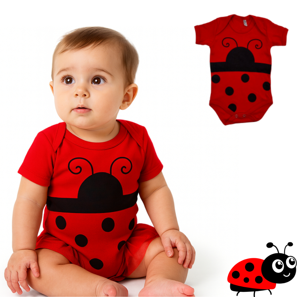 Body bebe Menina Temático Mêsversario Bichinhos - Joaninha 100% Algodão