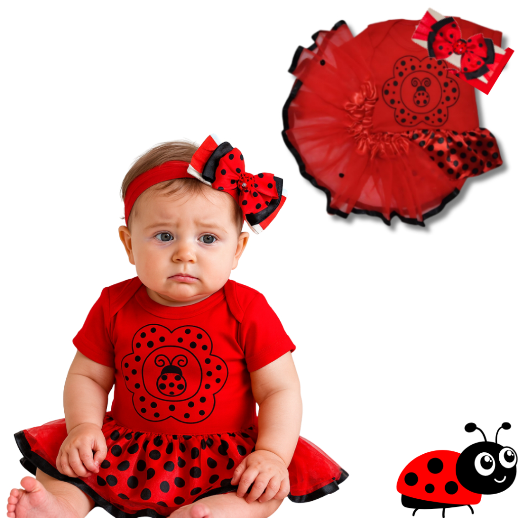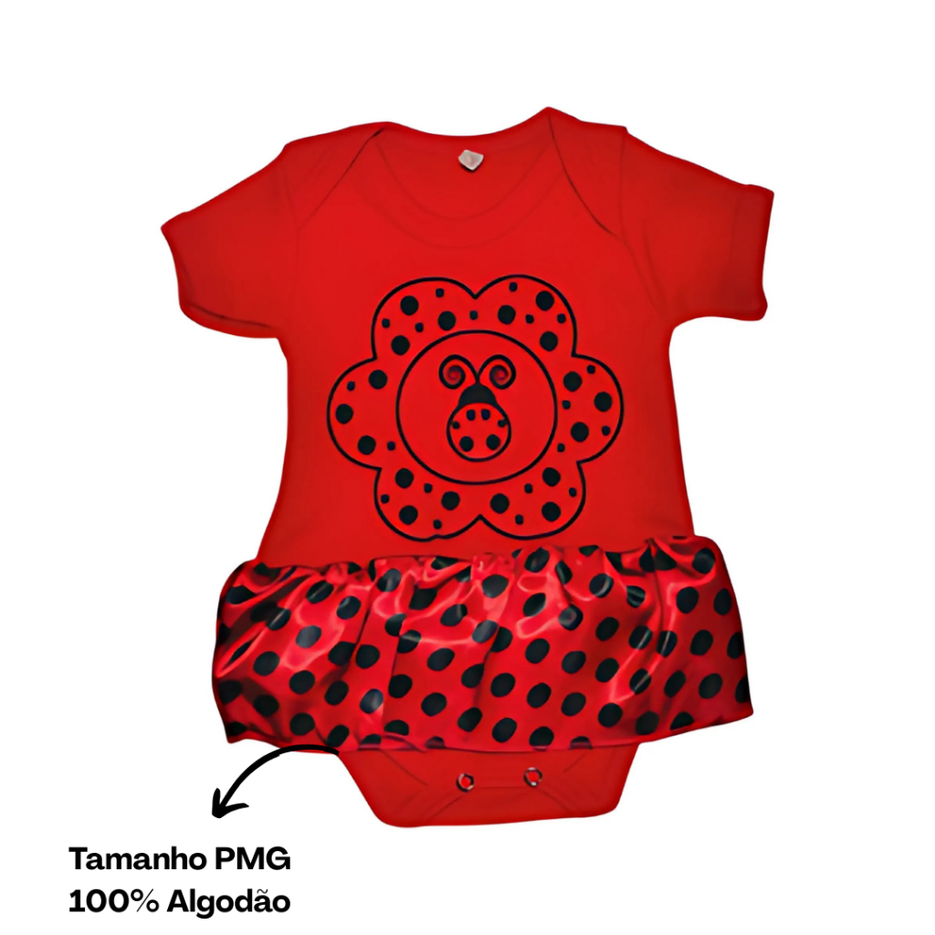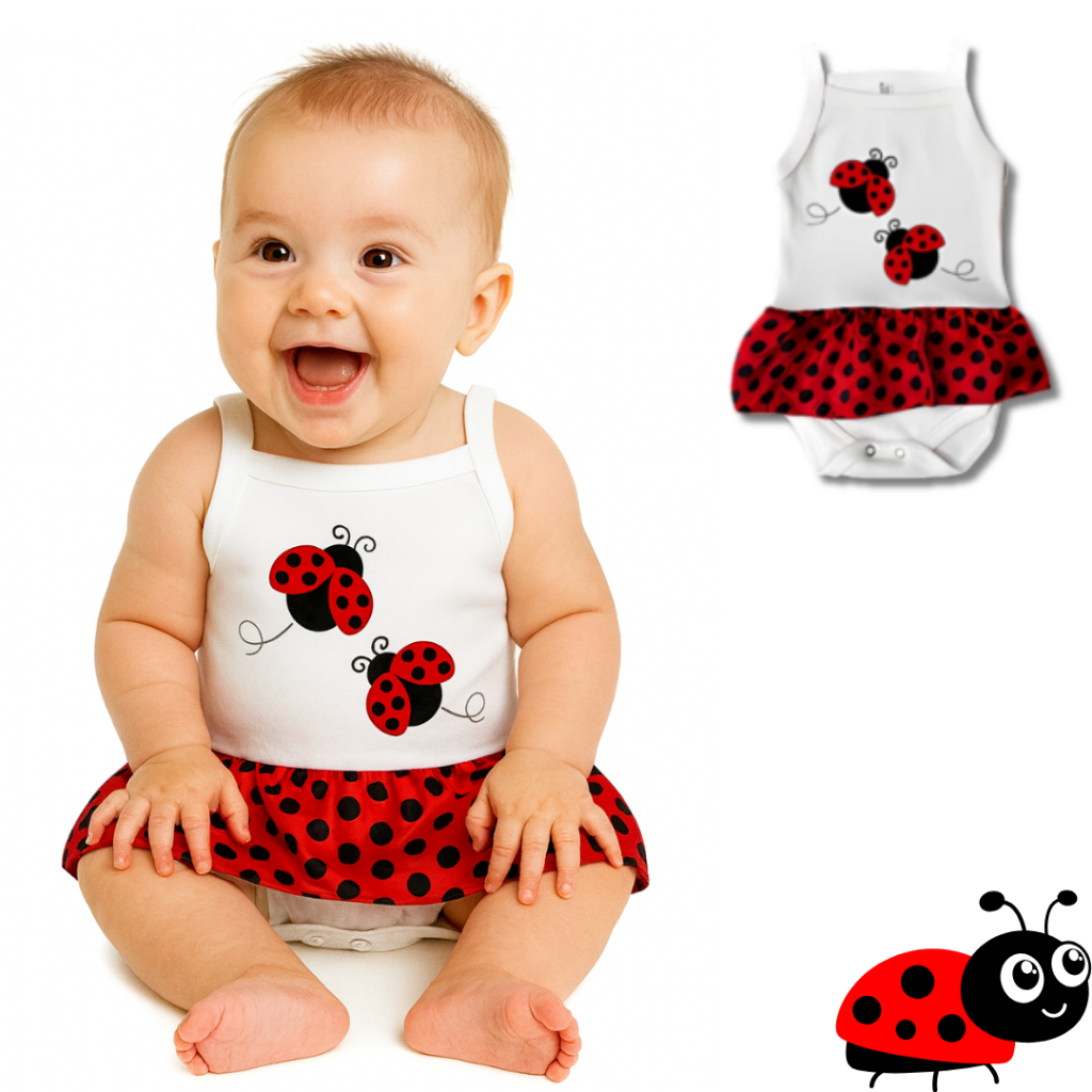 Body bebe Menina Temático Mêsversario Bichinhos - Joaninha 100% Algodão
