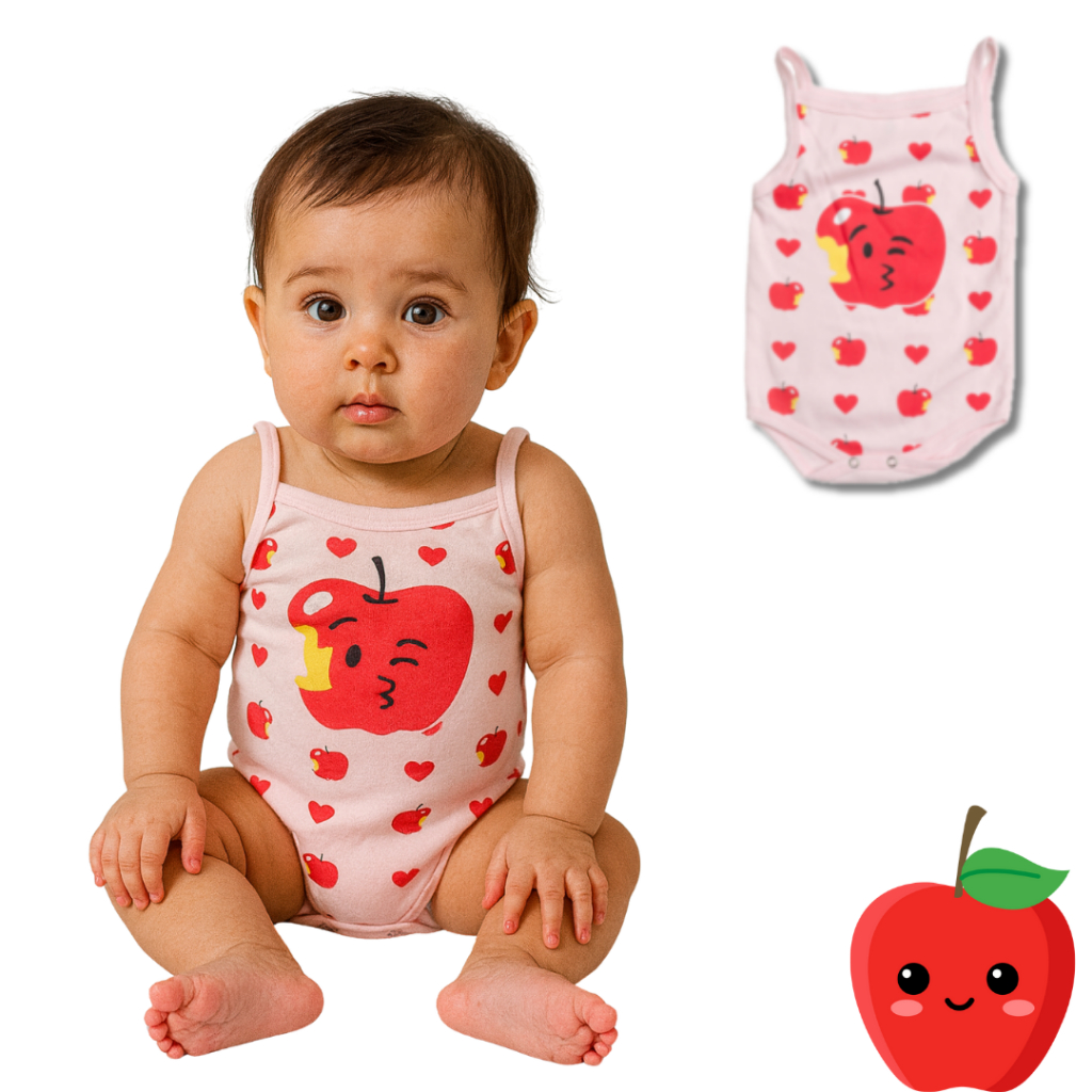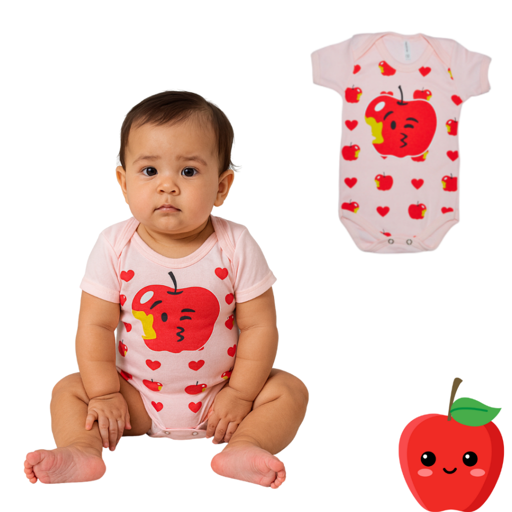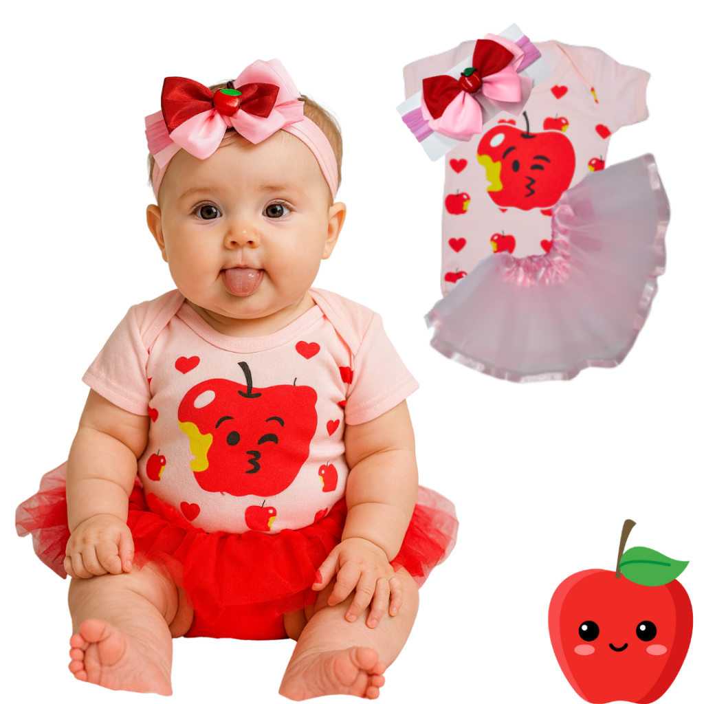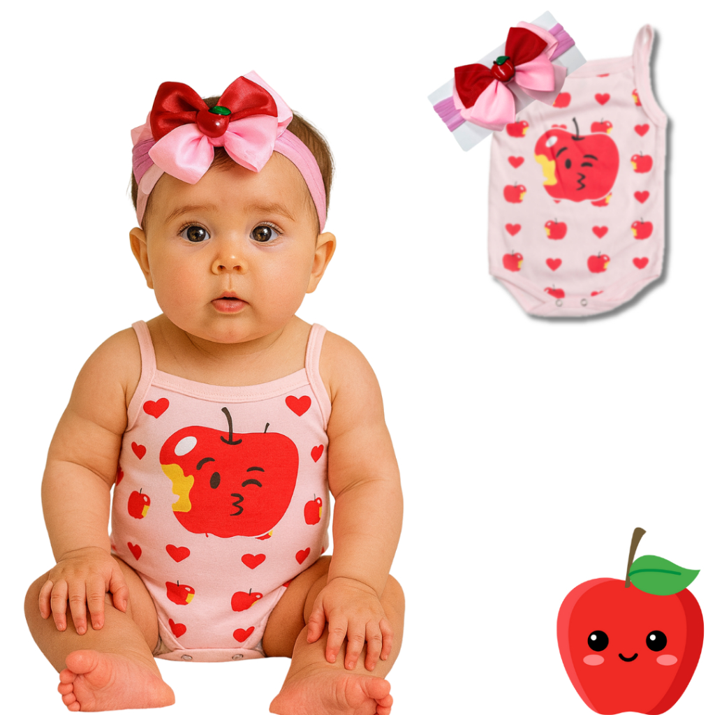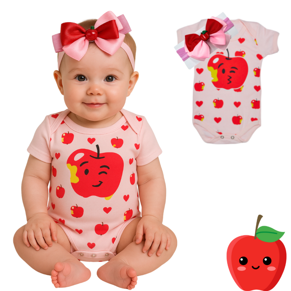 Body Bebê Frutinha + Laço Maçã – Roupa Bebê Algodão Mêsversario Temático