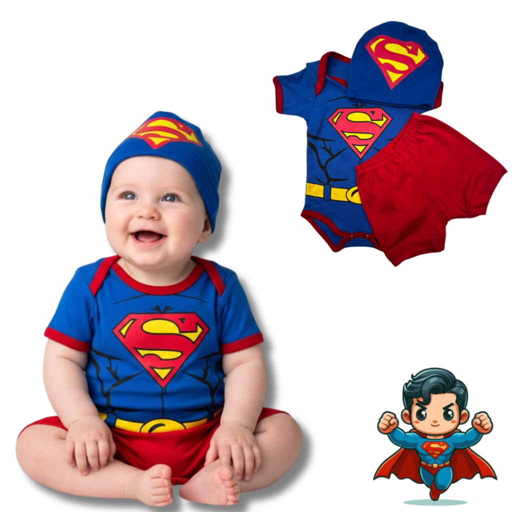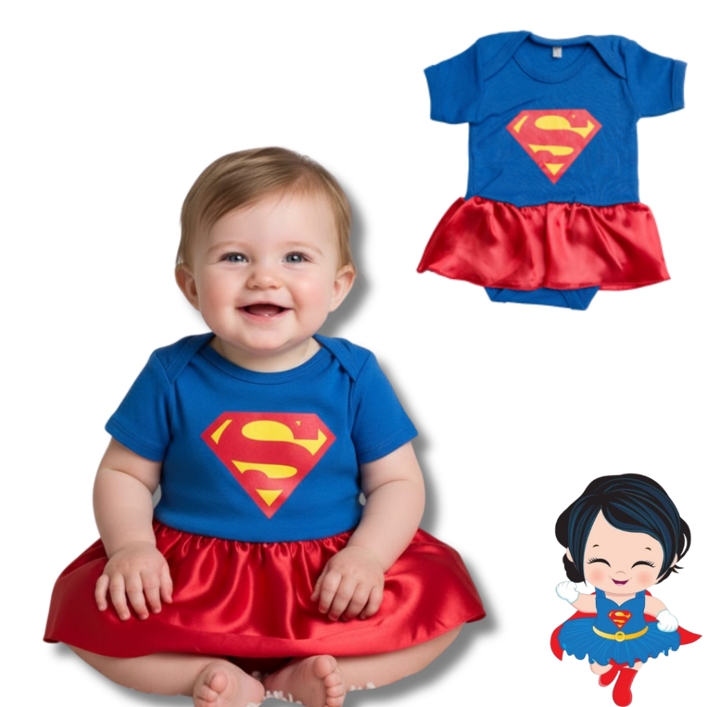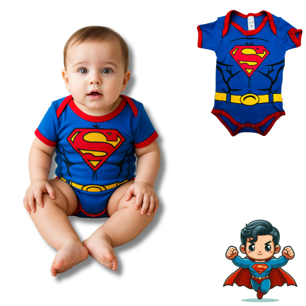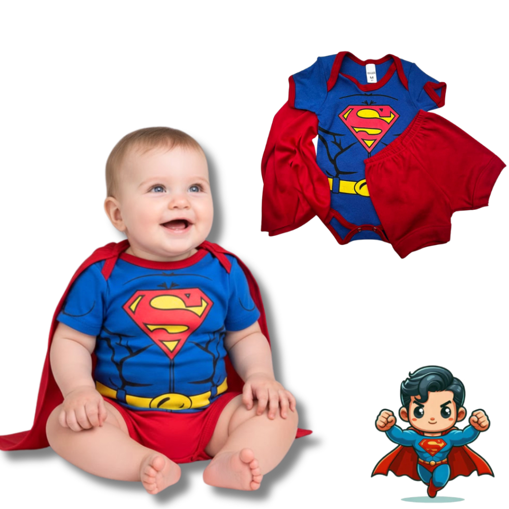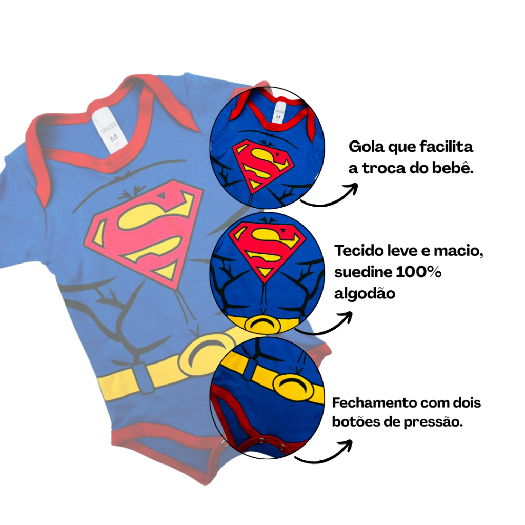 Body Bebê Infantil Menino Mêsversário Temático Super men Super Confortável Linha Premium