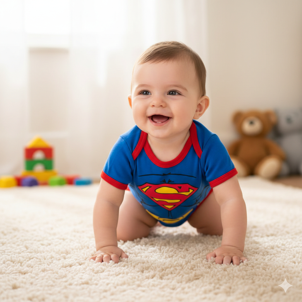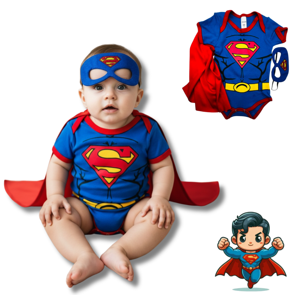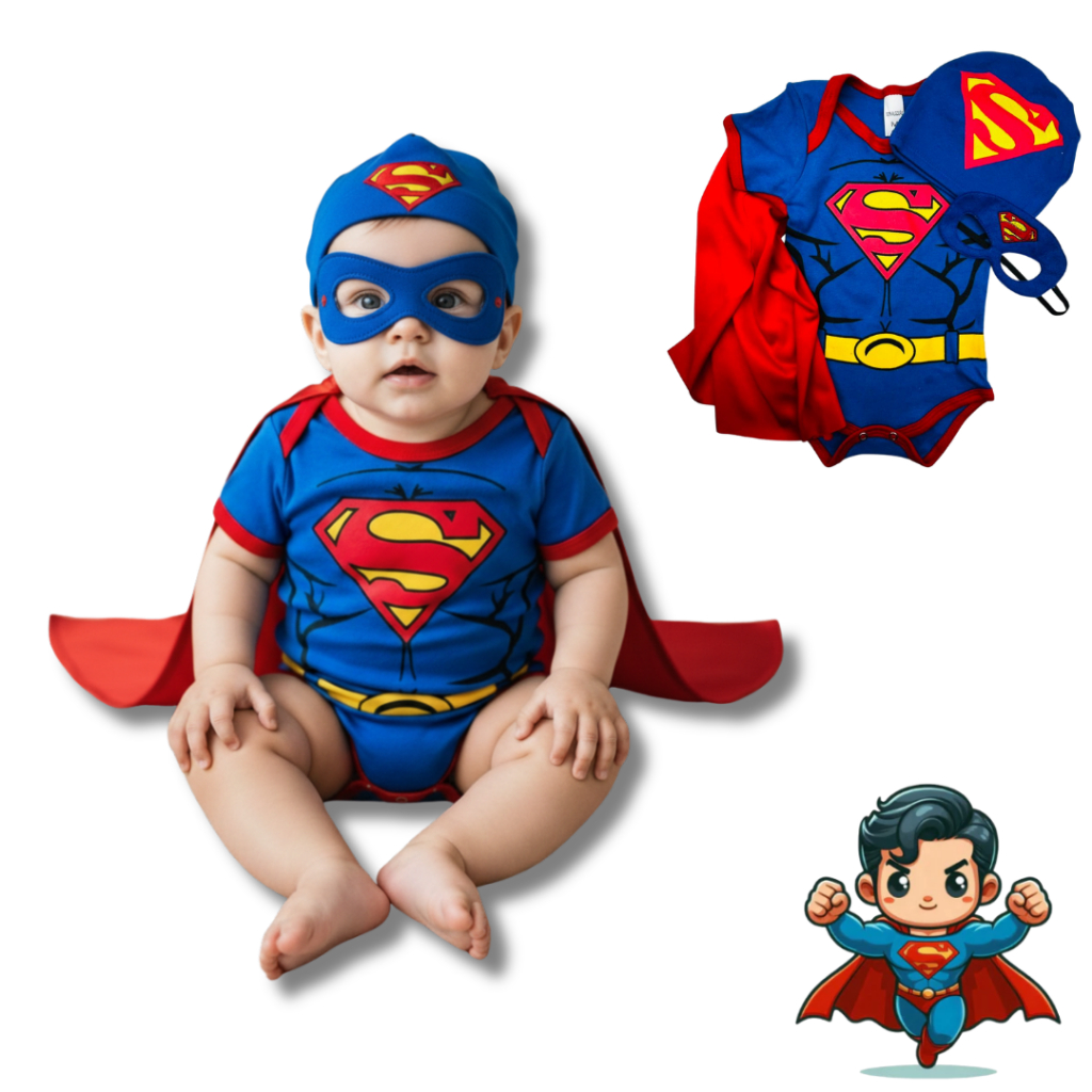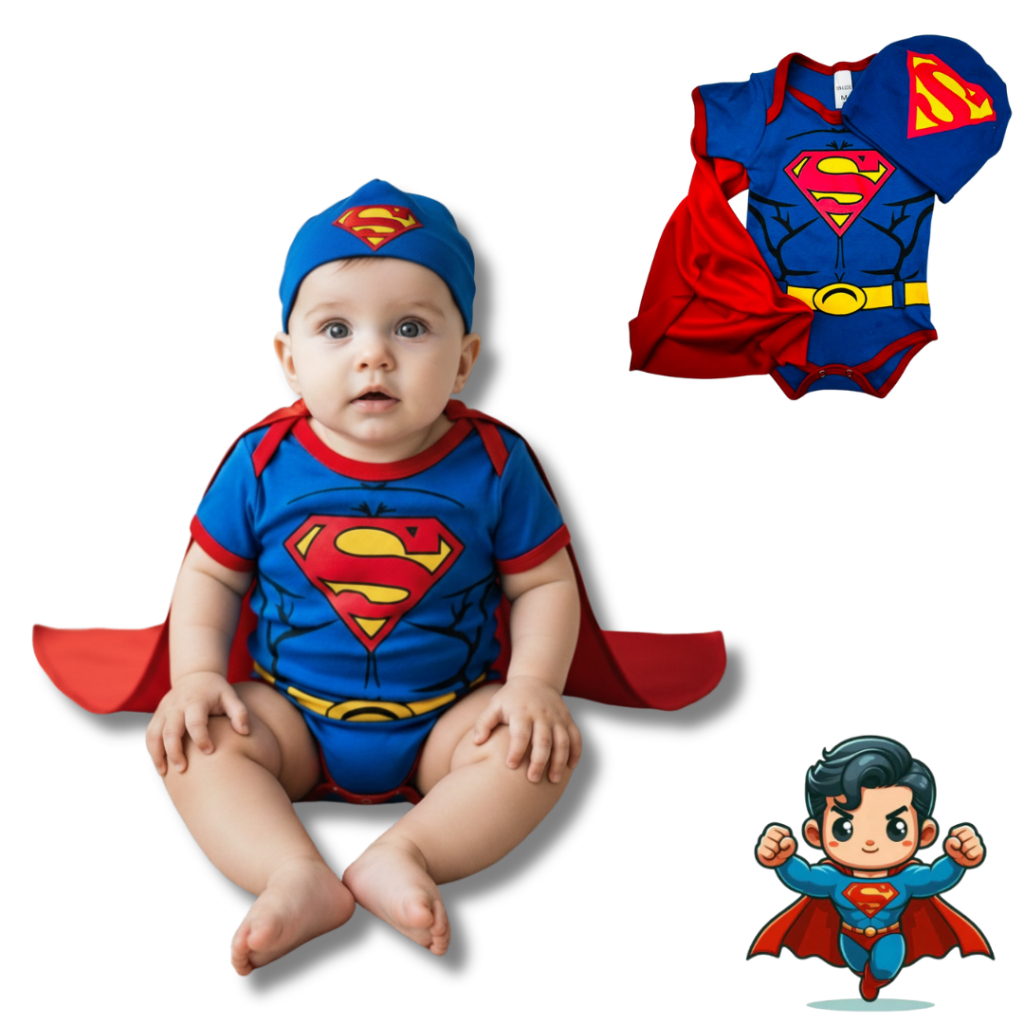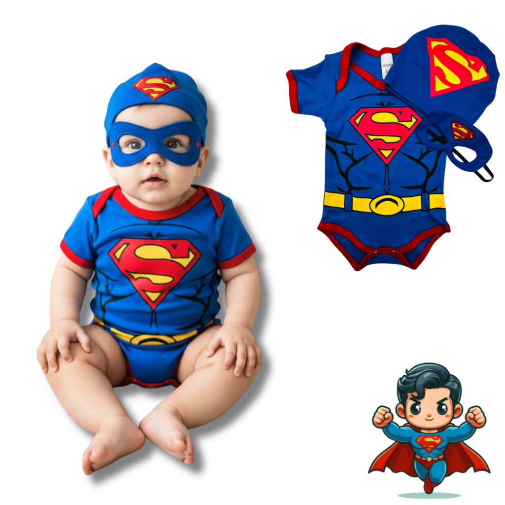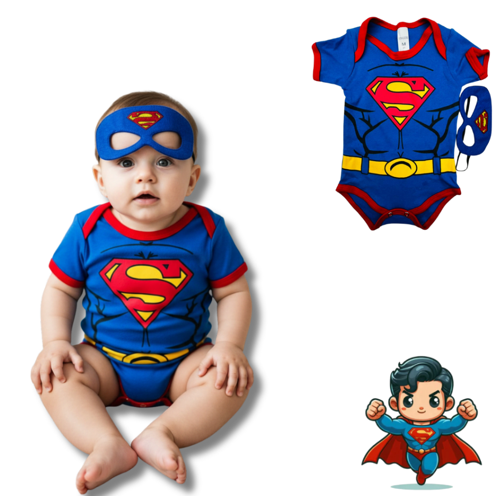 Body Bebê Infantil Menino Mêsversário Temático Super men Super Confortável Linha Premium