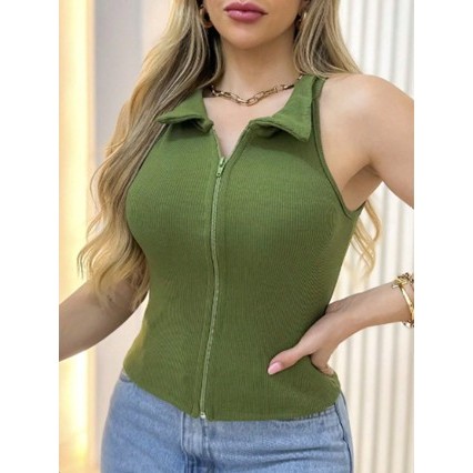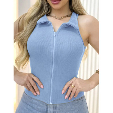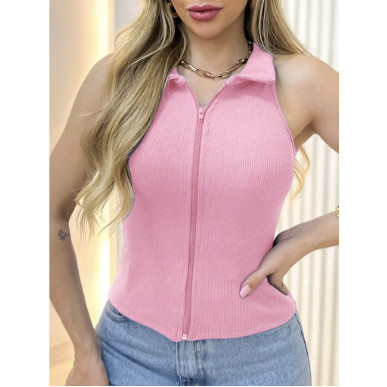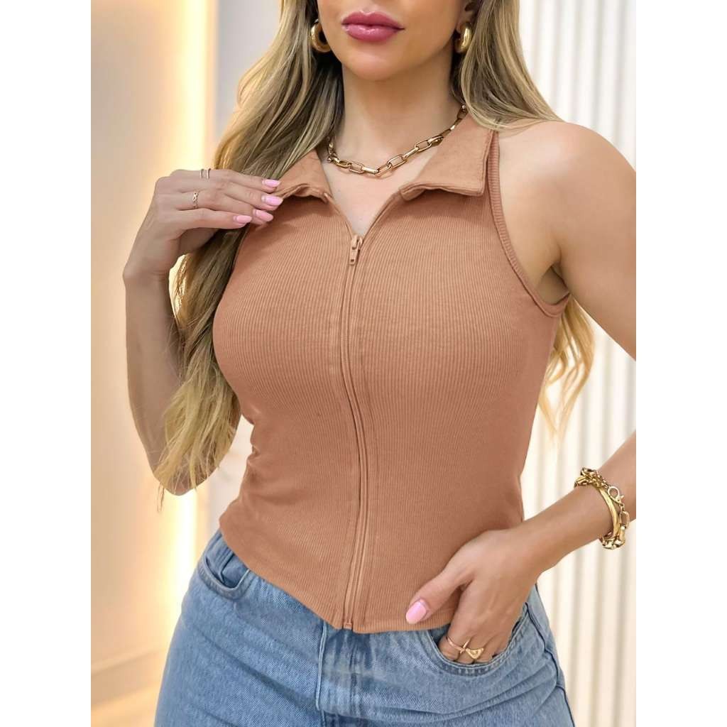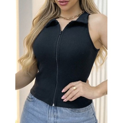 Estrela Fashion Regata Feminina Estilosa com Zíper Canelada (P/M/G/GG) 00167 Regata com Ziper Canelada com Ziper Canelad