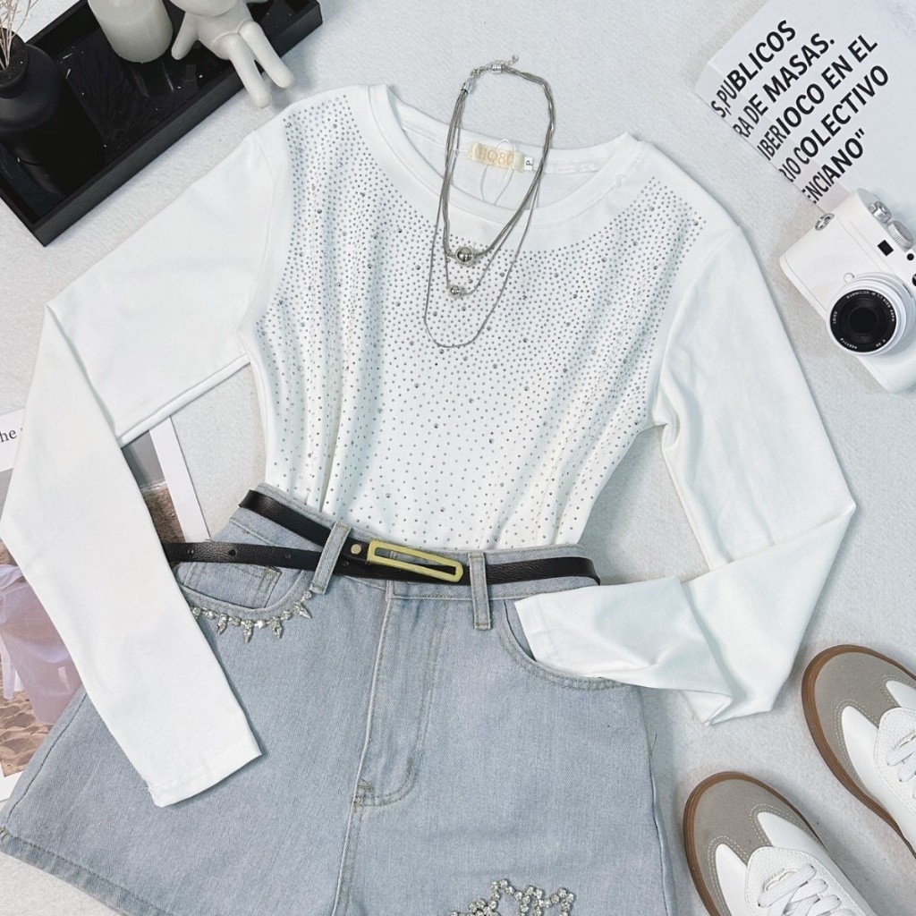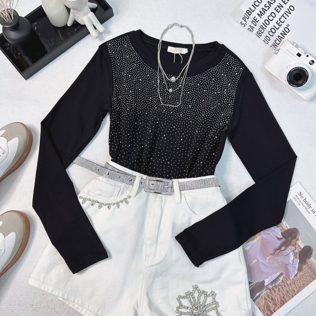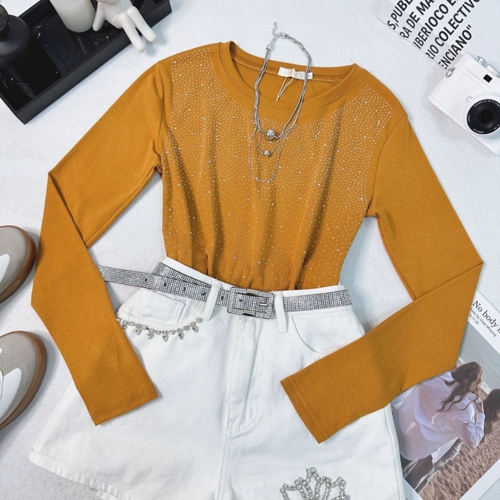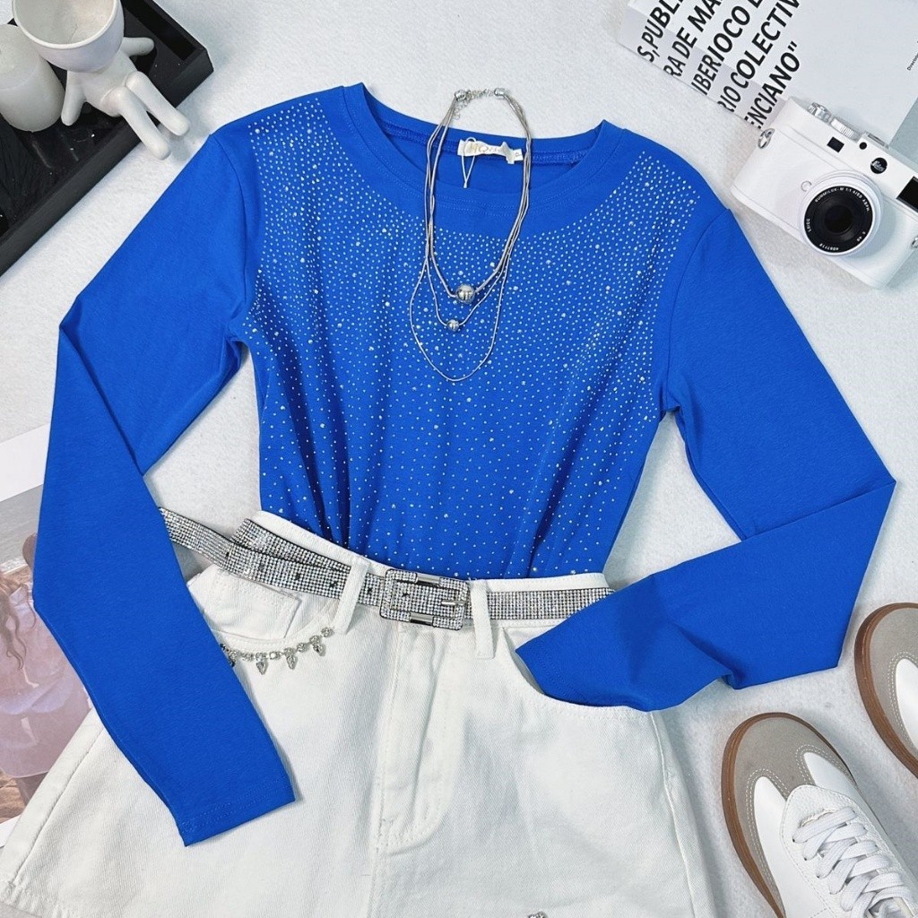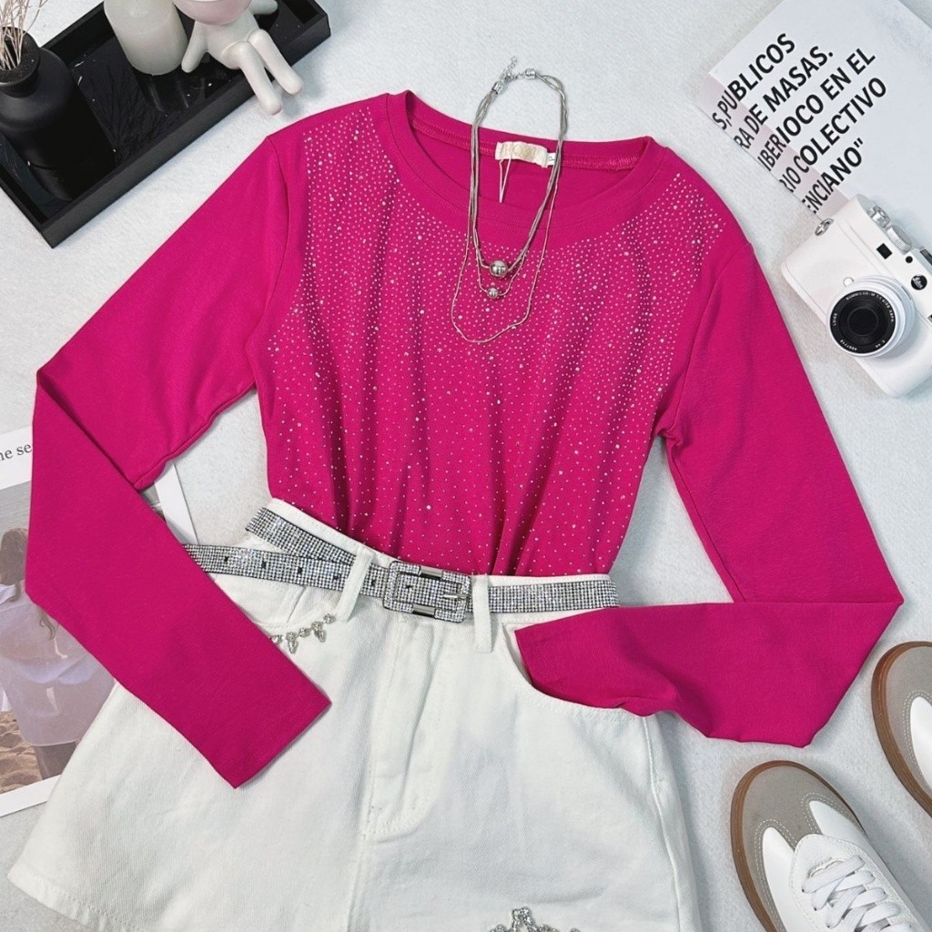 Estrela Fashion Blusa Manga Longa Com Strass Feminino 11106