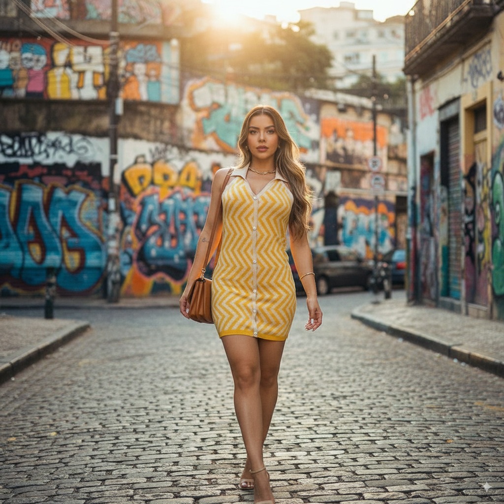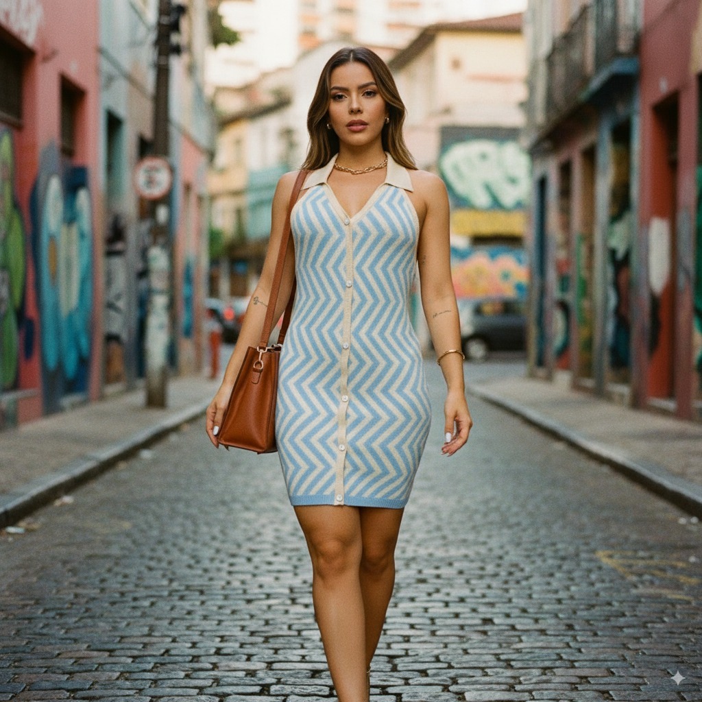 Estrela Fashion Vestido feminino Curto Frente Única Estampado HQ649
