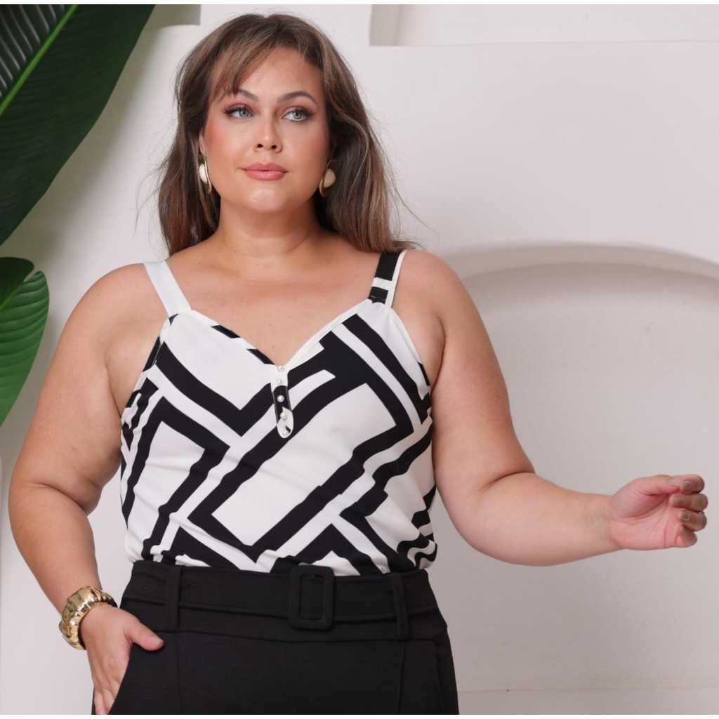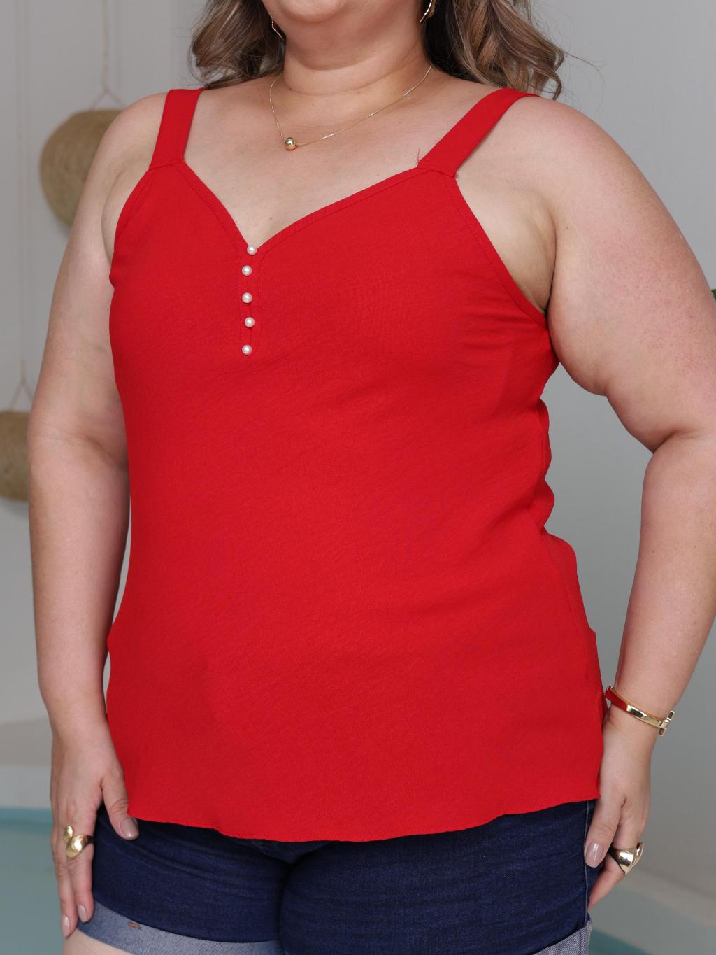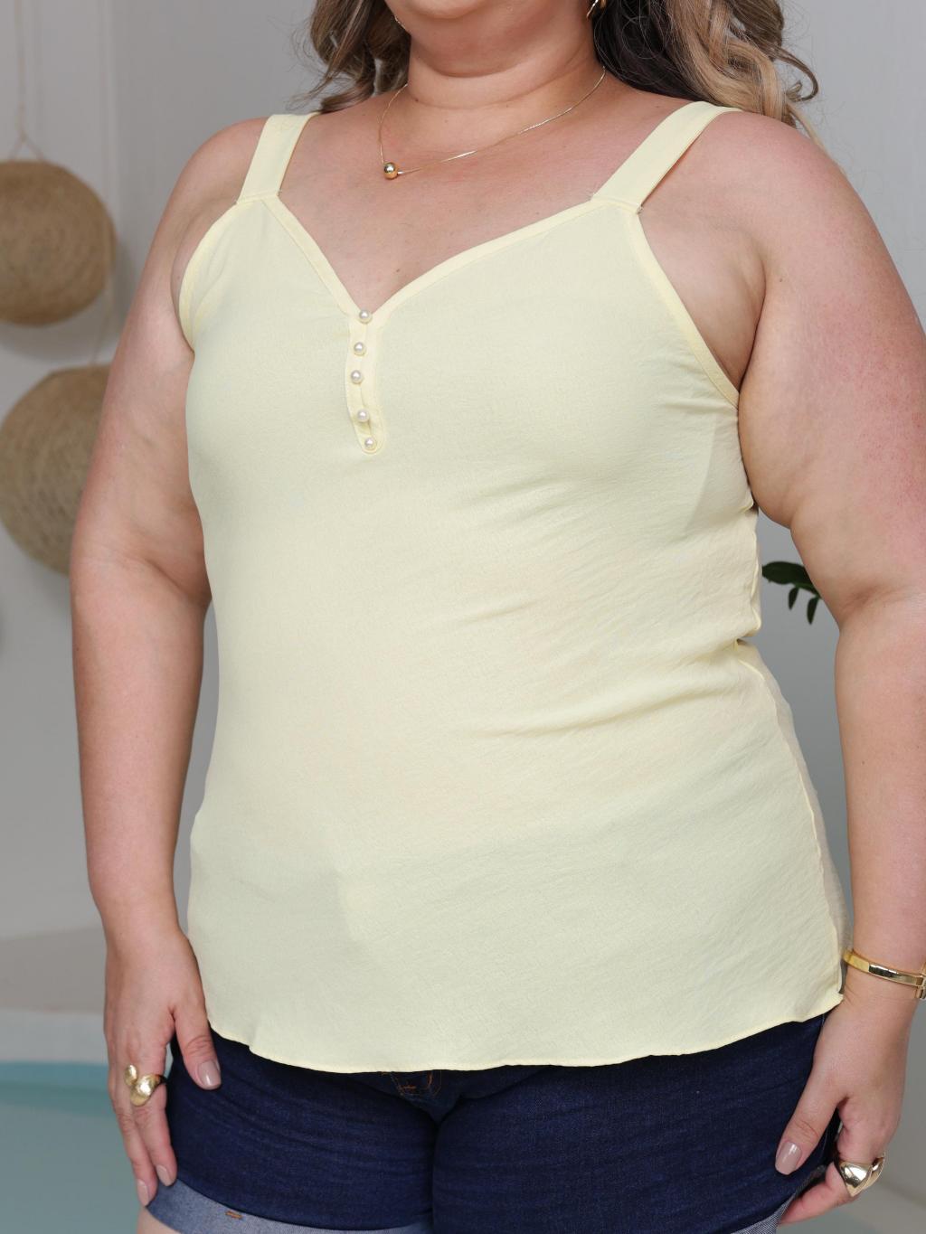 Blusa Regata Feminina Tecido Duna Leve Elegante Verão Plus Size Lisa e Estampado Regata Alça Larga com Pérolas G1 G2 G3