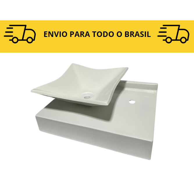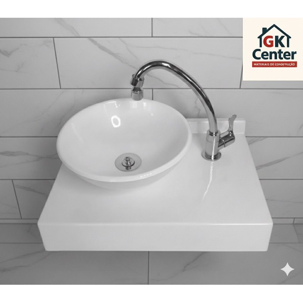 Pia de Banheiro com Bancada Branca Mármore Sintético/ Pia de Mármore Sintético/ Lavatorio / Cuba