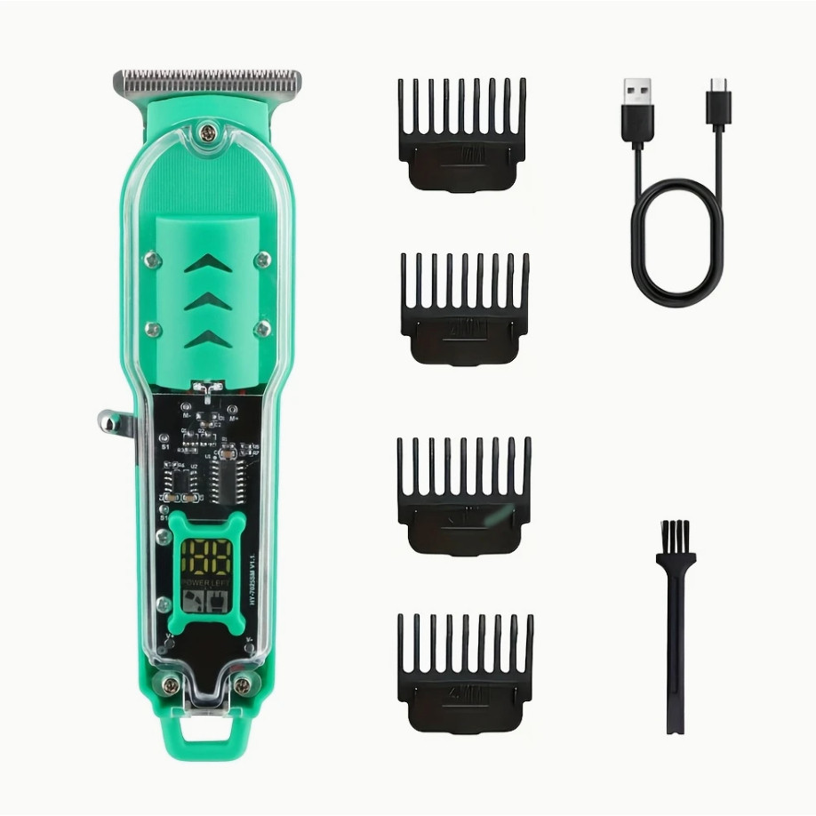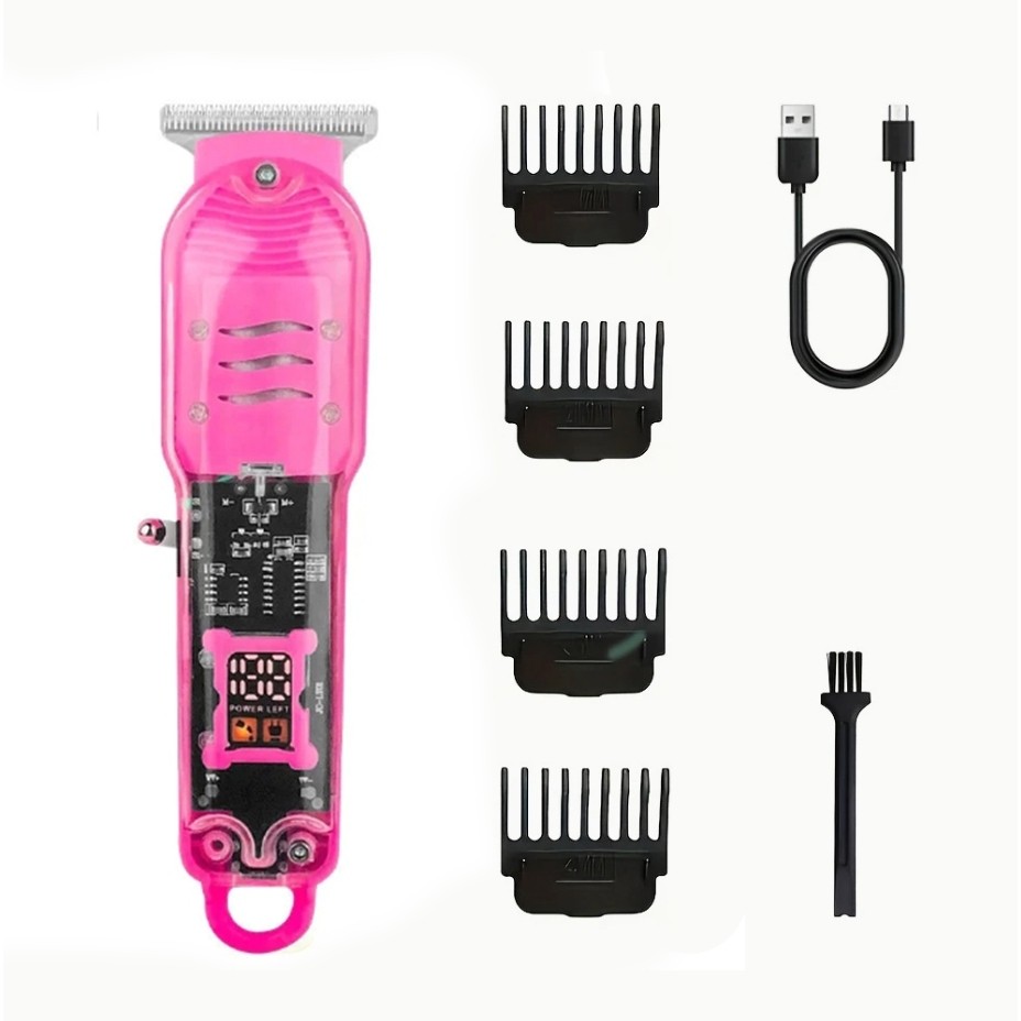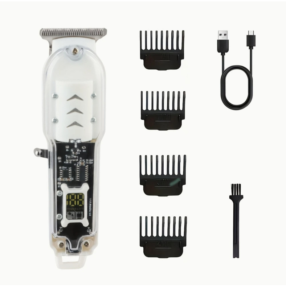 Máquina De Cortar Cabelo Profissional Smart Lcd Barbeador Elétrico Transparente Sem Fio Para Homens