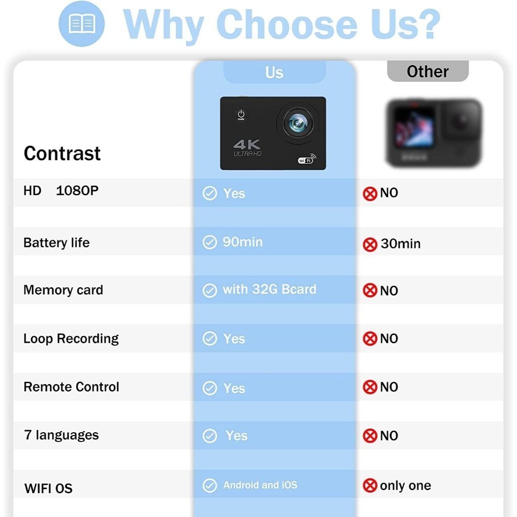 Câmera de ação 4K Ultra HD WiFi 30 metros à prova d'água com controle remoto-JACKCELL