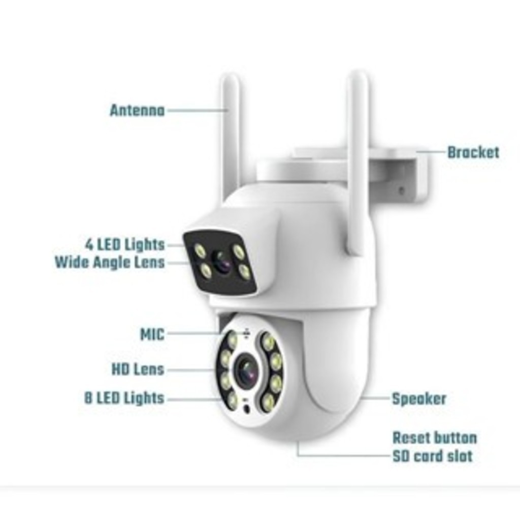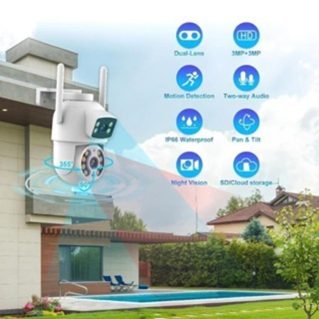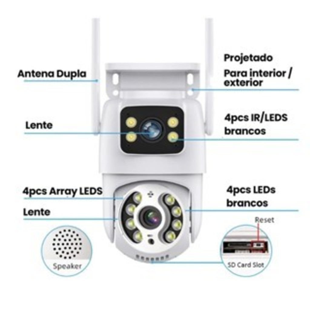 Câmera De Segurança Lente Dupla ICSEE IP66 Wi-Fi 360° Sensor Movimento Visão Noturna 2 em 1 Fixa + Giratória