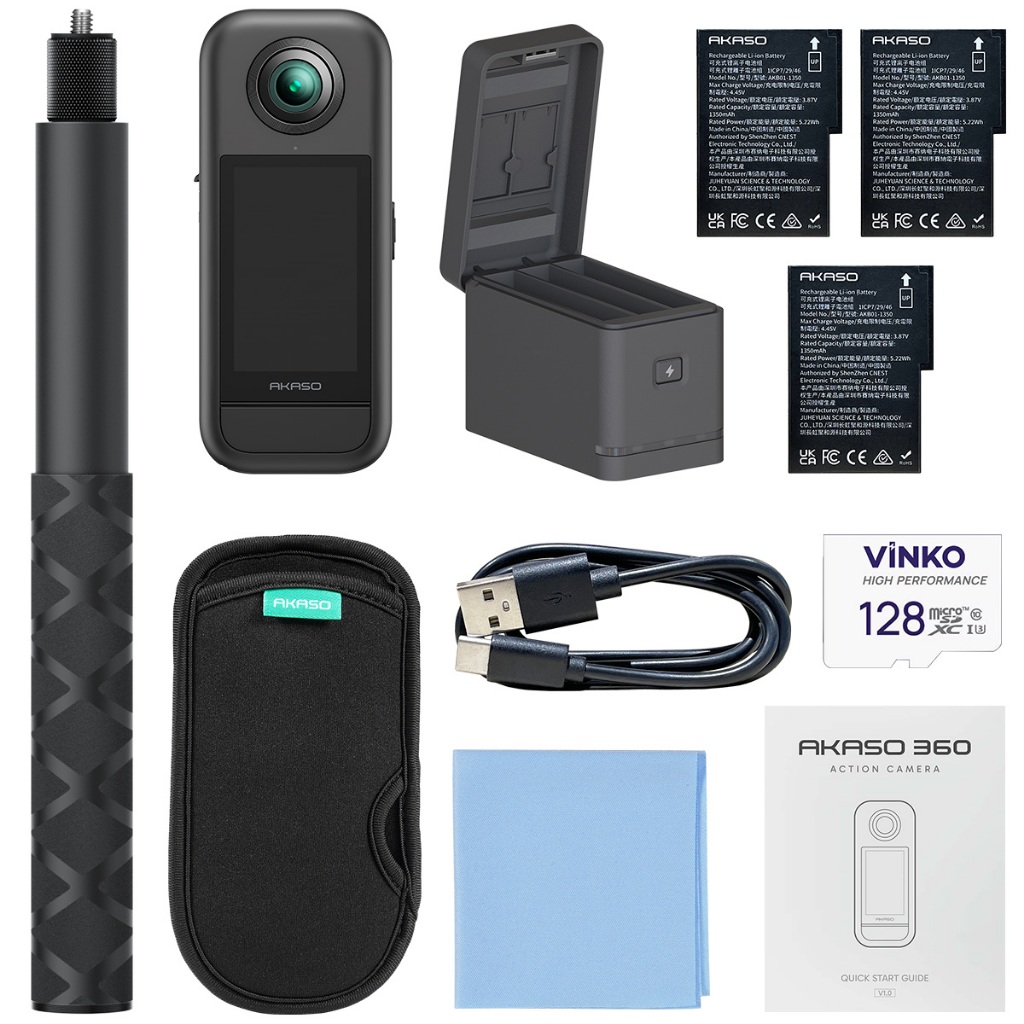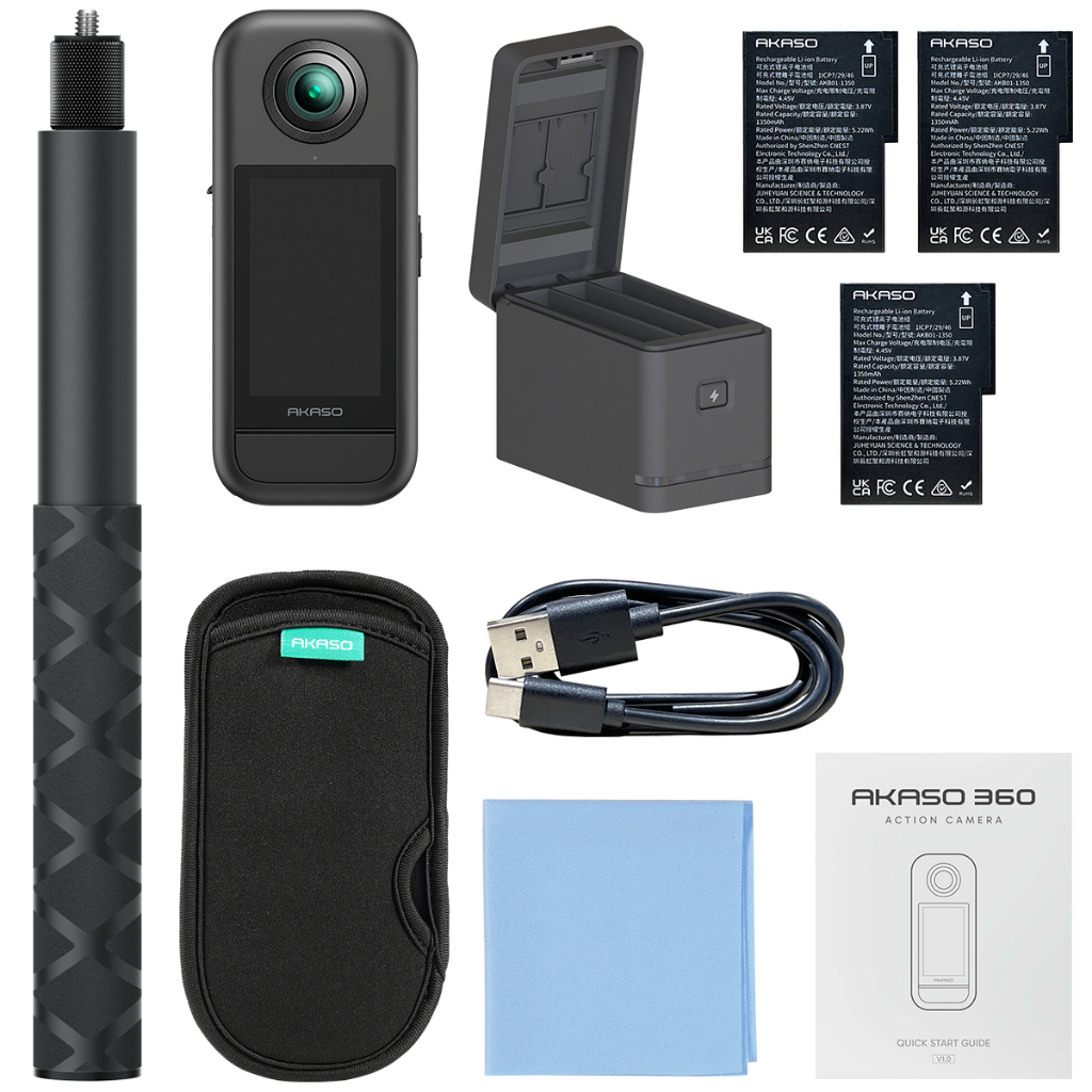 Câmera De Ação AKASO 360 Prova De Intempéries 5.7K 360° 72MP Com Cartão MicroSD