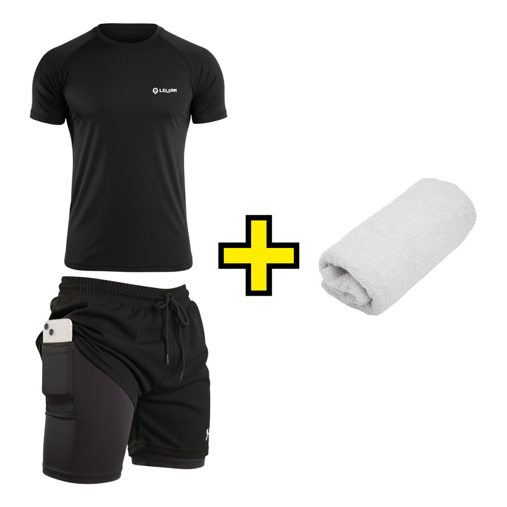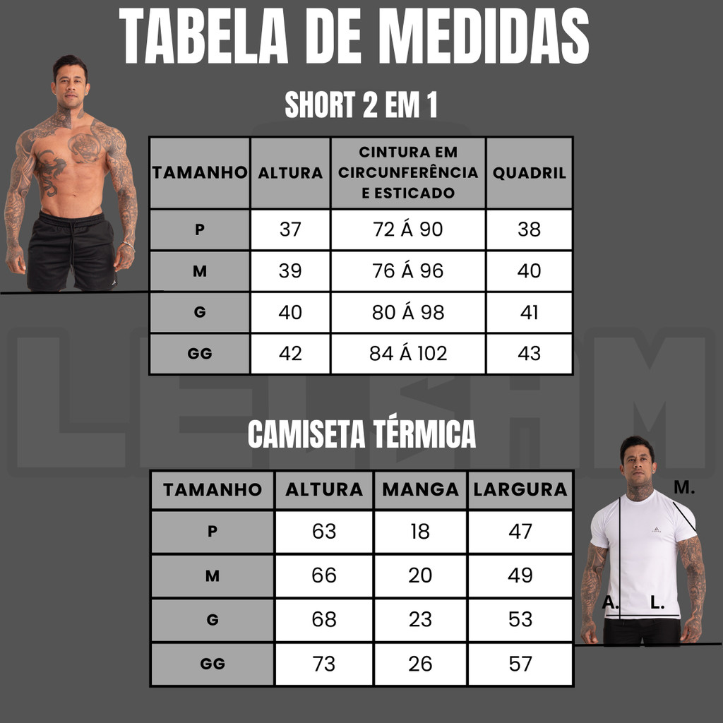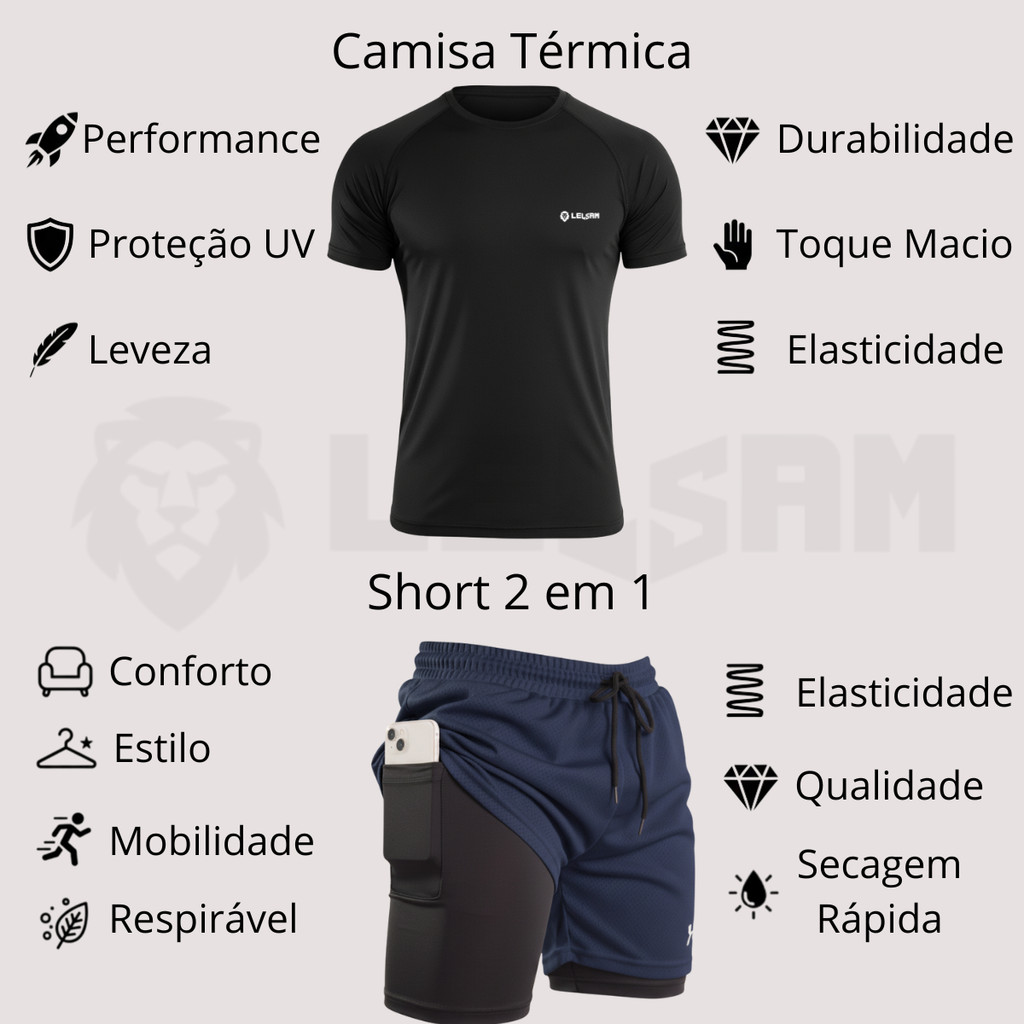Kit Treino Masculino 1 Short Duplo 2em1 + 1 Camisa Térmica manga curta Fitness