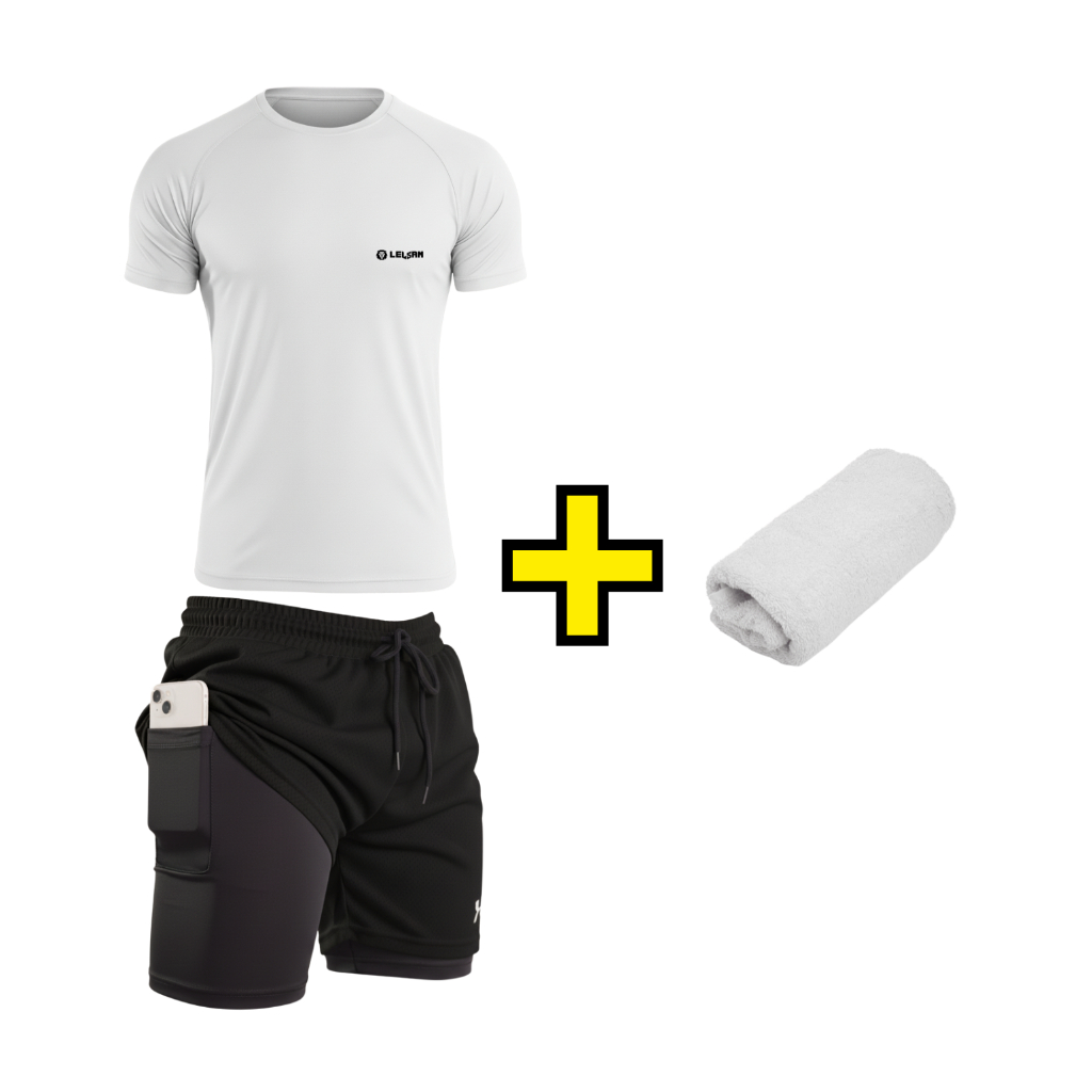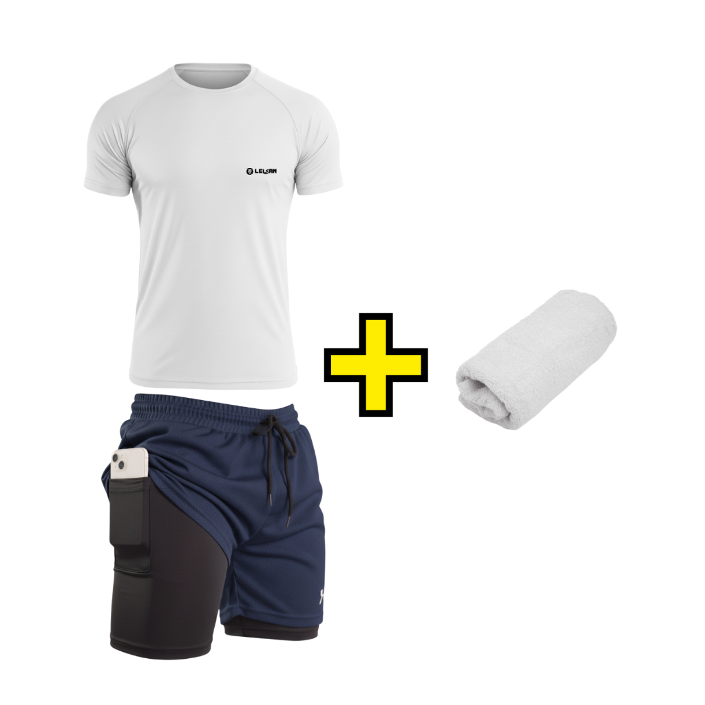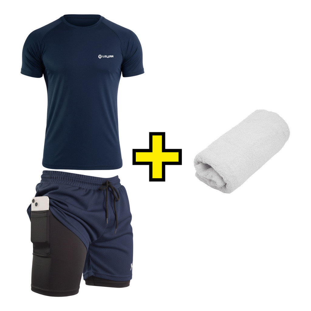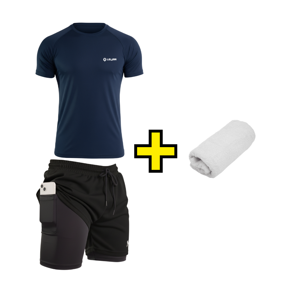 Kit Treino Masculino 1 Short Duplo 2em1 + 1 Camisa Térmica manga curta Fitness