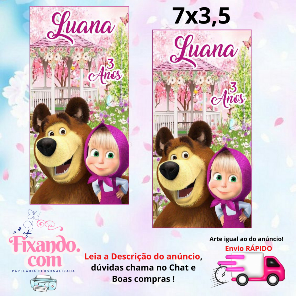 MASHA E URSO- 100/60/40 Adesivos Personalizados para Festas ( Envia Rápido)