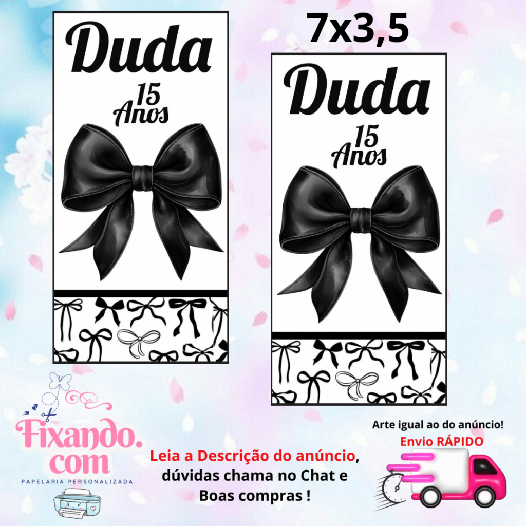 LAÇO PRETO - 100/60/40 Adesivos Personalizados para Festas ( Envia Rápido)
