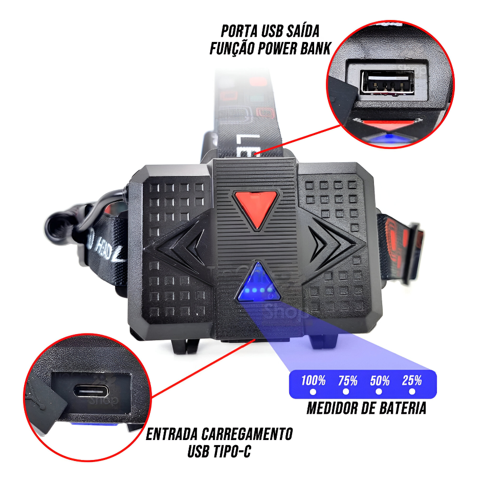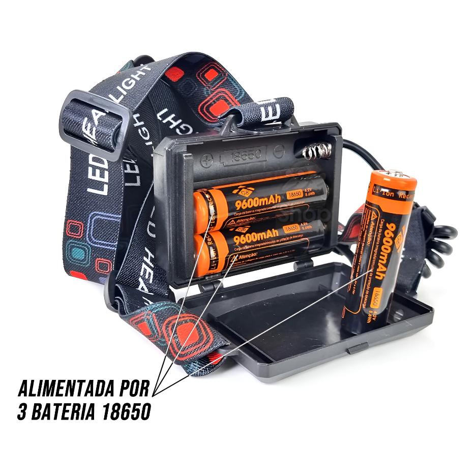 Lanterna Cabeça Premium Recarregavel Sensor Prova D'água 8 Leds Xte 3 Baterias Trilha 9.600mAh Casa