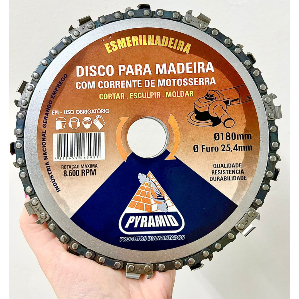 Disco Corrente Moto Serra Madeiras Entalhar Esculturas 180mm furo 25,4mm