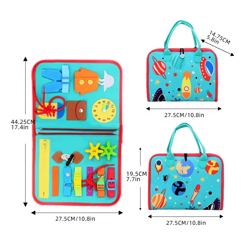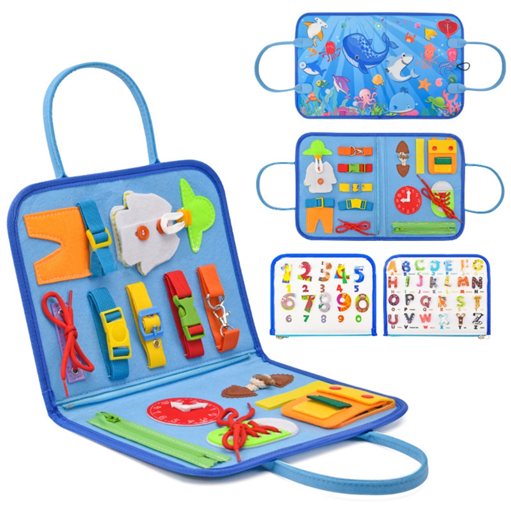 Placa Ocupada Montessori para Crianças Pequenas - Brinquedos Sensoriais com Fivela Zíper Botão para Aprendizado