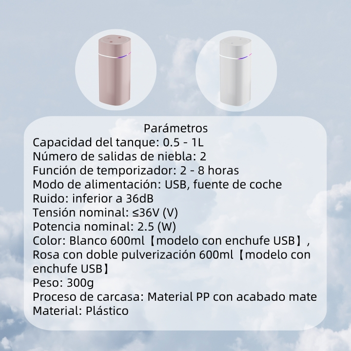 Umidificador De Ar Grande 12 Horas Com 2 Saídas De Ar E Led 3 Em 1 Multifuncional 600ml Para Quarto