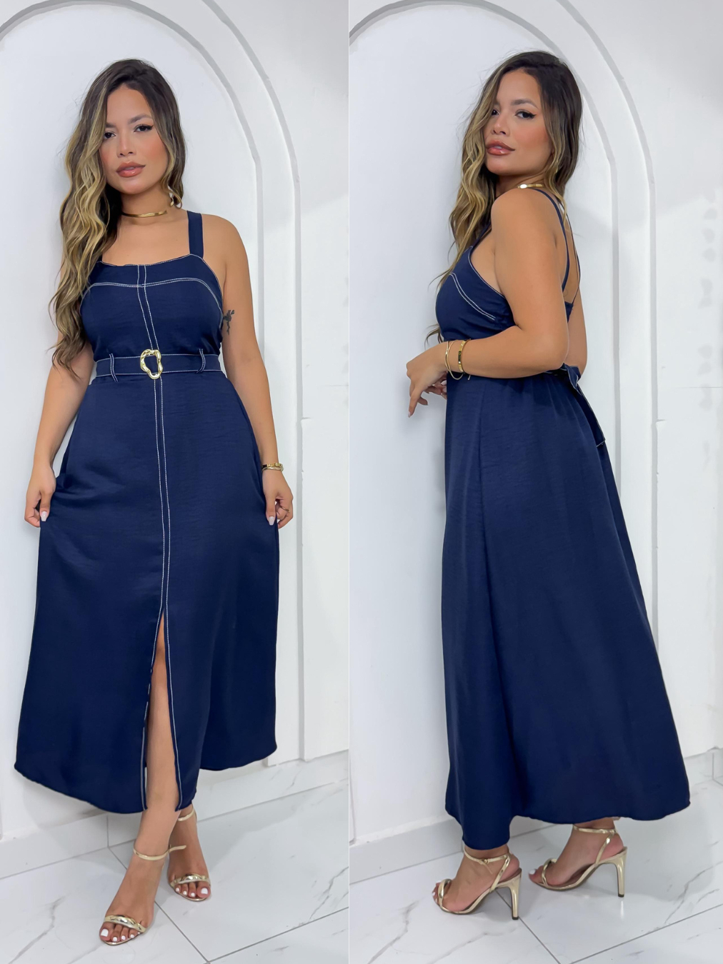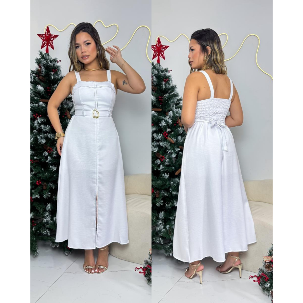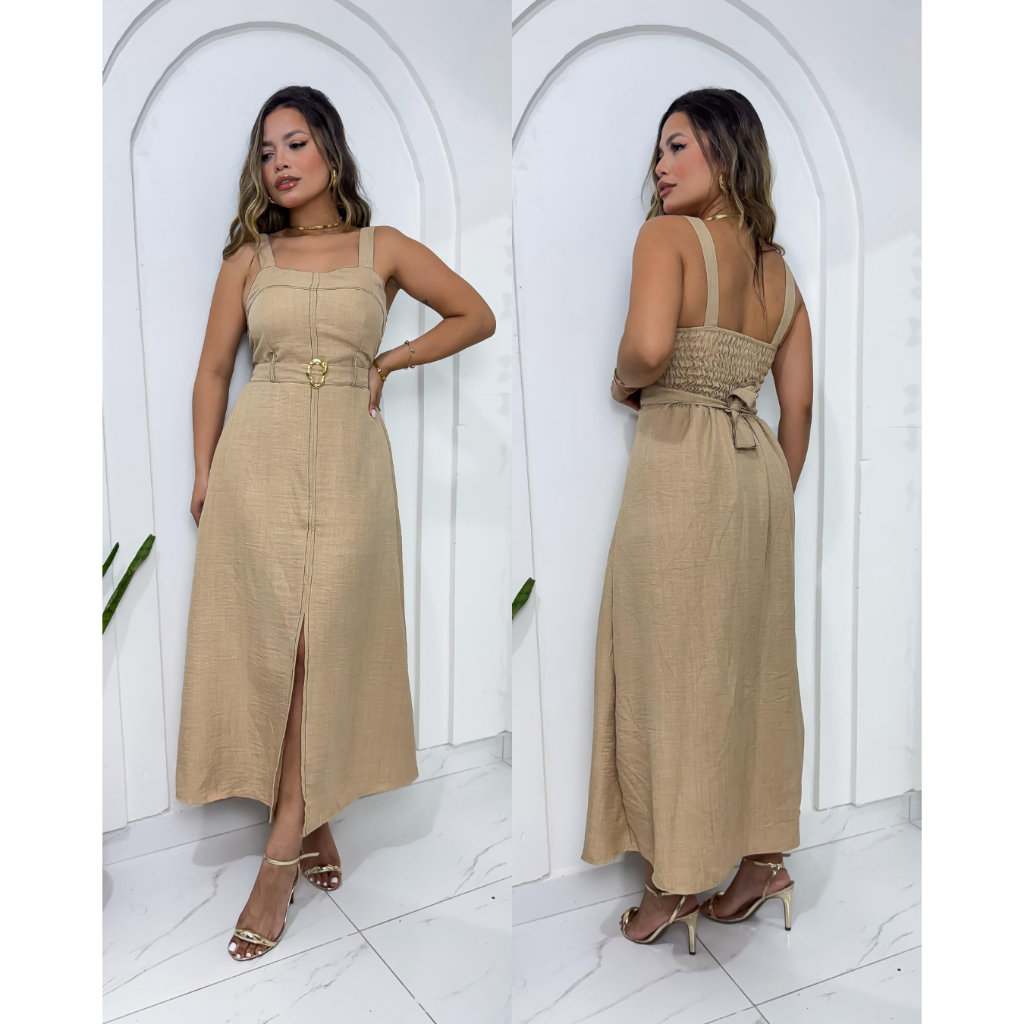 Vestido Midi com Alças Largas, Fenda Frontal e Cinto Detalhado ✨ -- Tamanho G 38/42