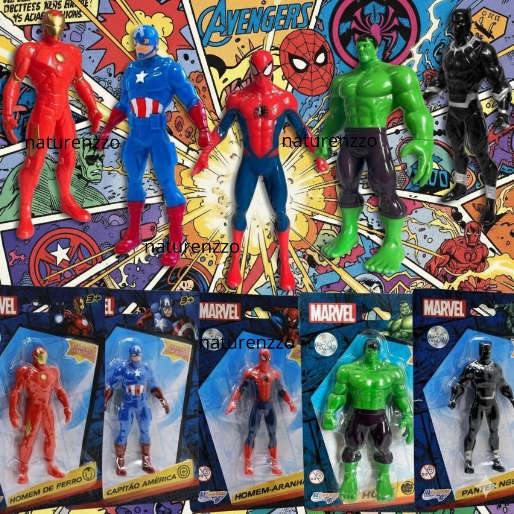 Kit 5 Bonecos Colecionáveis Marvel Vingadores Homem Aranha Hulk Homem De Ferro Capitão América/Pantera