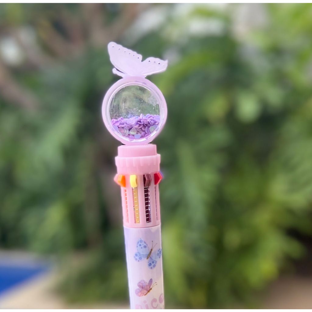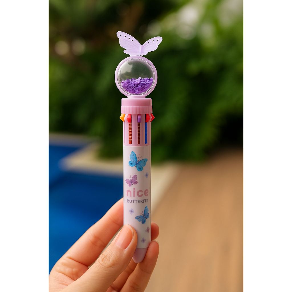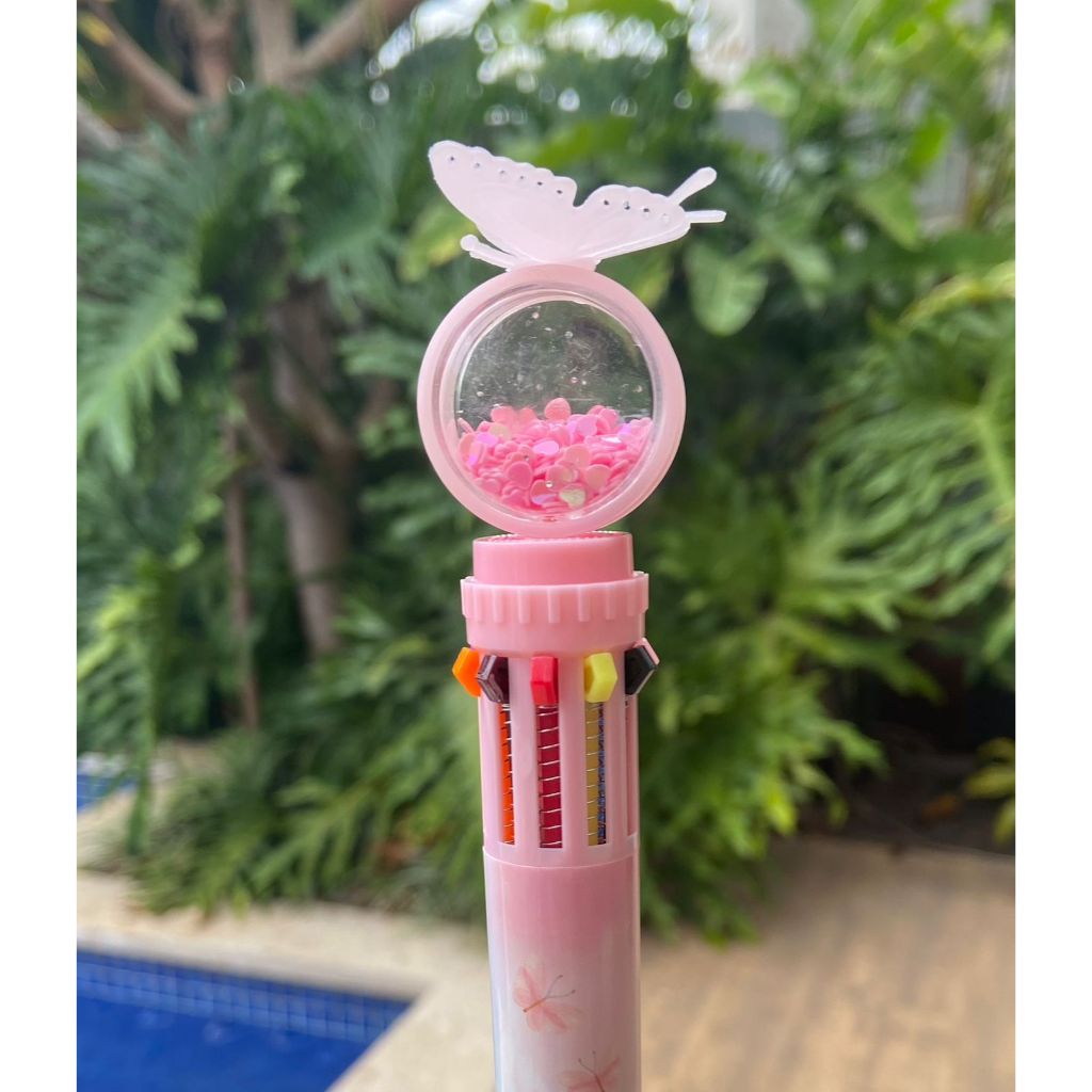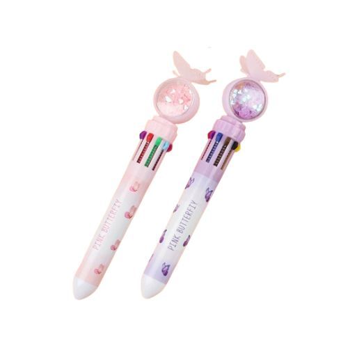 Canetas Esferográficas Borboleta De 10 Cores Multicoloridas 10 Em 1 Fofa Papelaria Glitter Escolar
