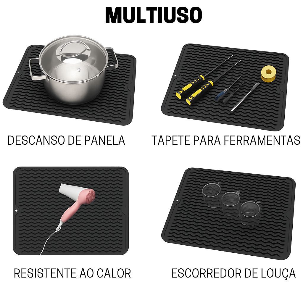 Tapete Escorredor De Louça Pia Silicone Descanso Protetor De Panela Pratos e Talher