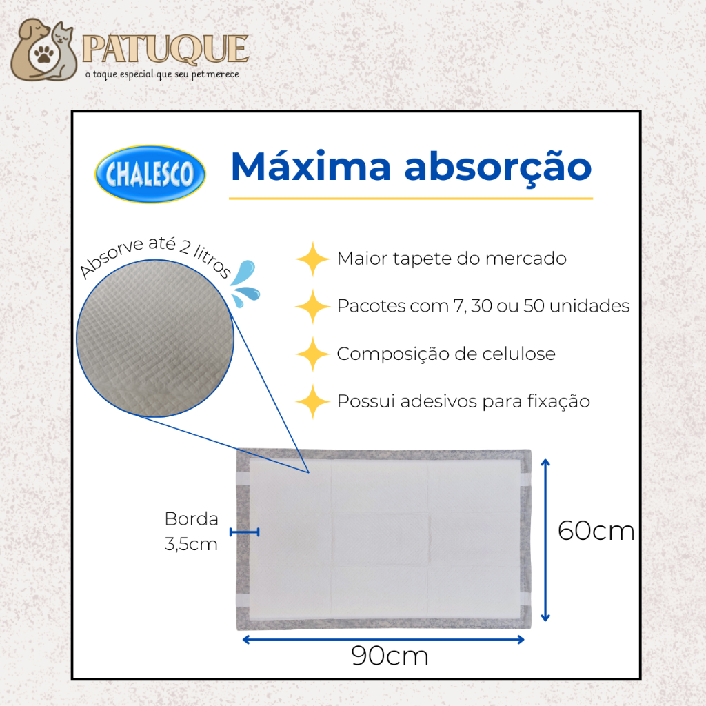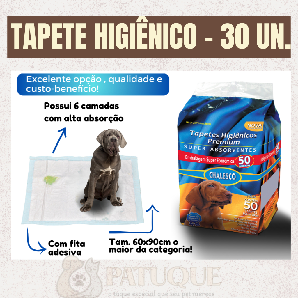 Tapete Higienico Premium 60x90cm 30 Unidades Medio Chalesco Super Absorvente