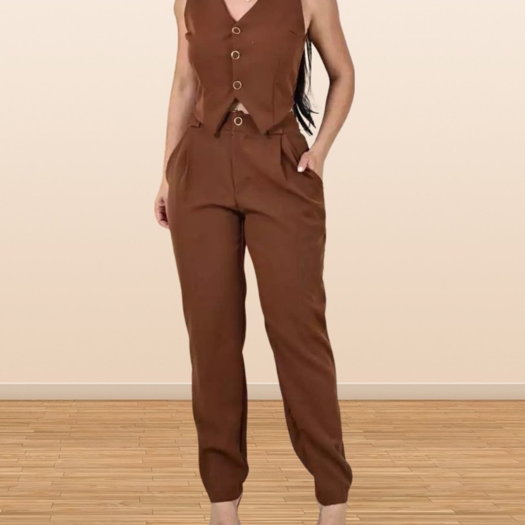 Calça e Colete Conjunto Feminino Cinza Alfaiataria - O clássico reinventado.