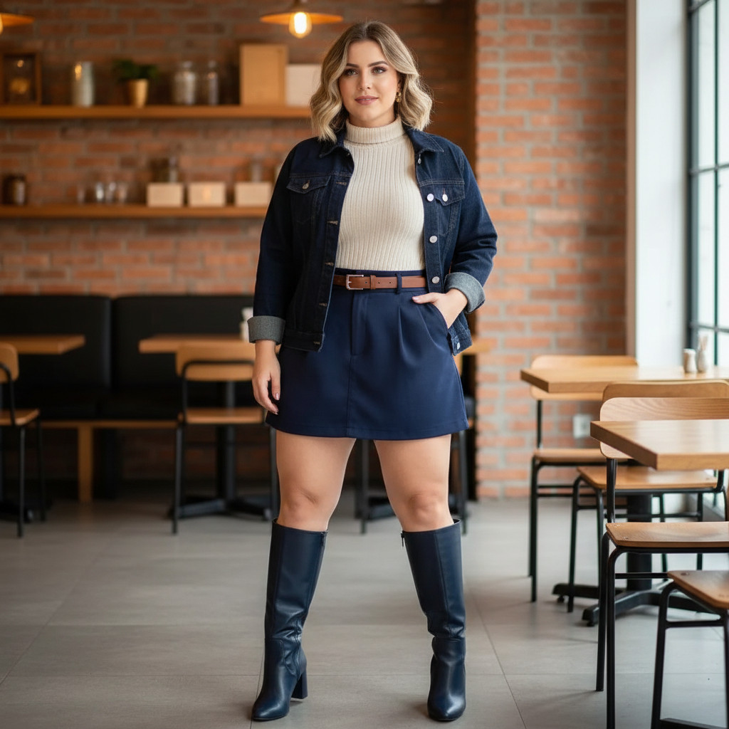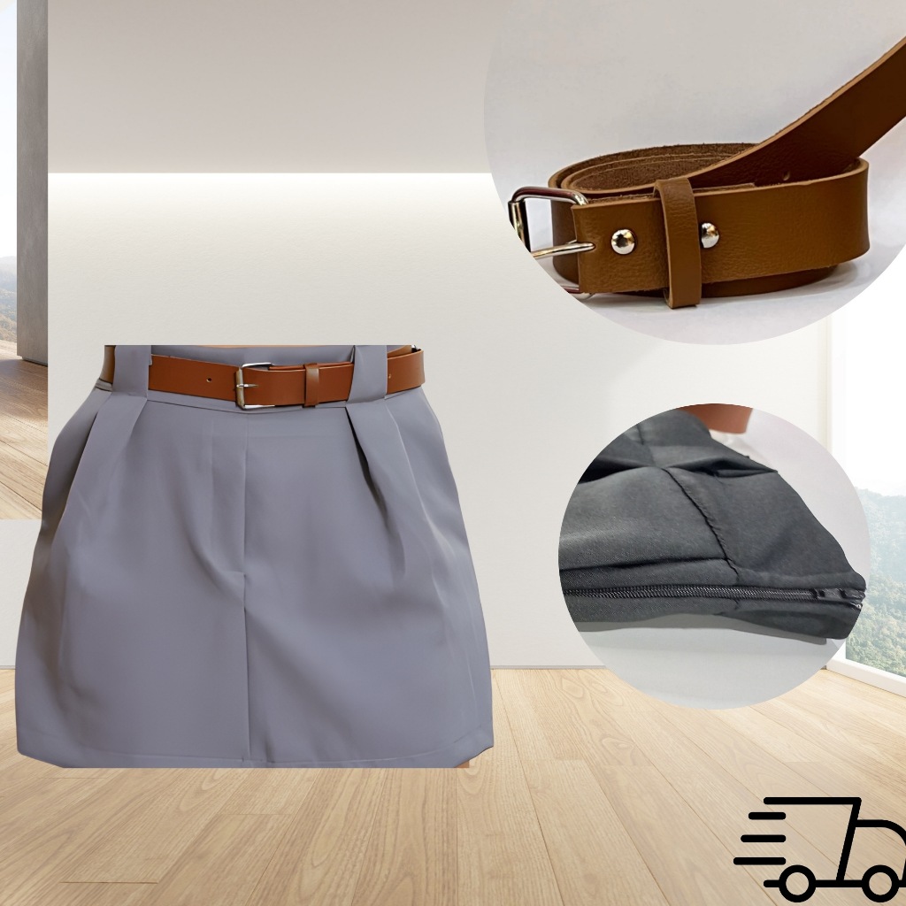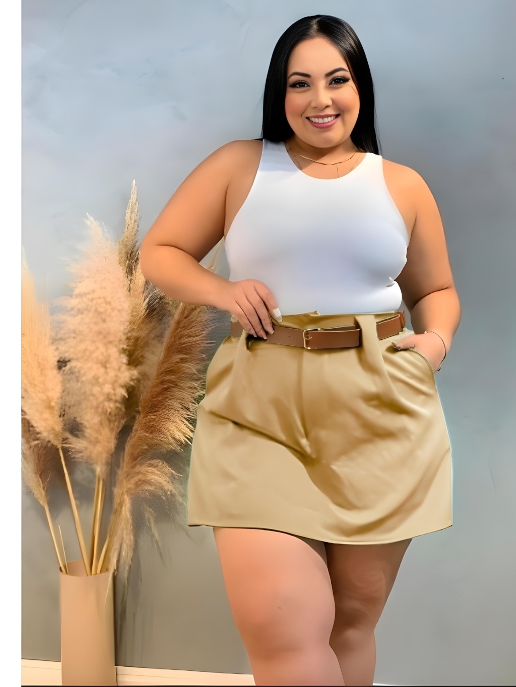 Short Saia Plus Size Alfaiataria Feminino Elegante Acessórios Conjunto Com Cinto e Bolso Tamanhos 44 -52