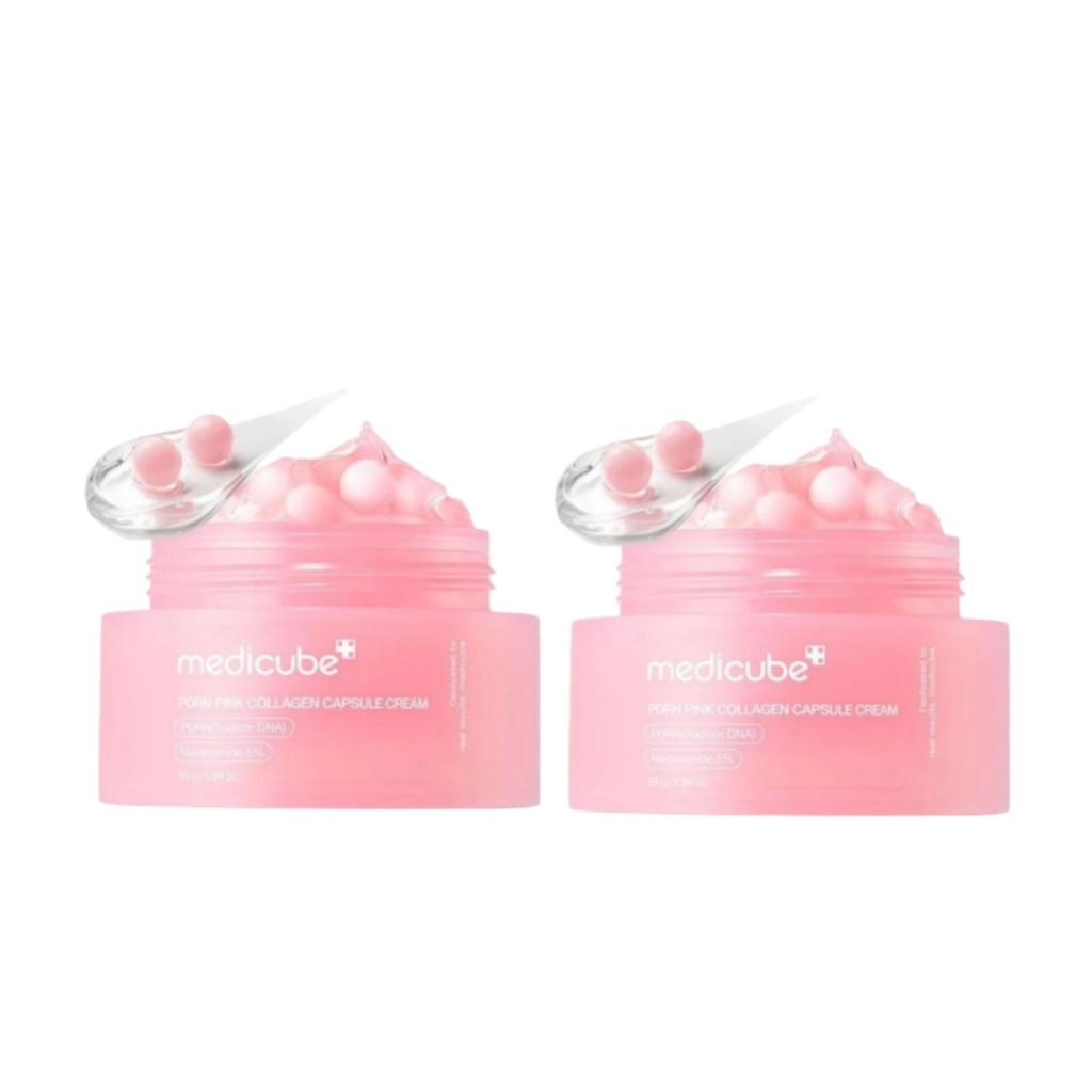 3.15 [Medicube] Creme Cápsula De Colágeno Rosa PDRN 55g | Iluminar Barreira De Reparo Firmador E Elástico Niacinamida