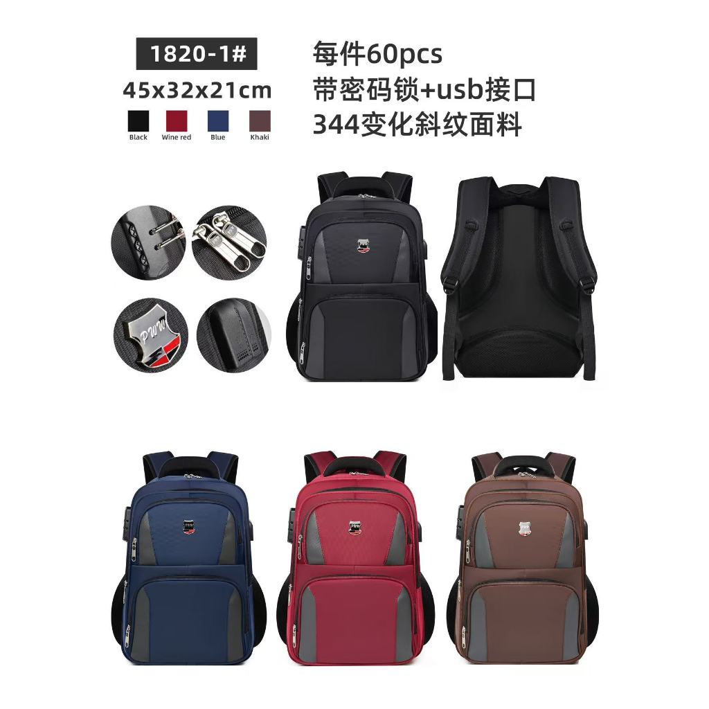 Mochila Grande Impermeável Faculdade Executivo Reforçada Notebook Cadeado com Bolso Anti-furto 1820-1