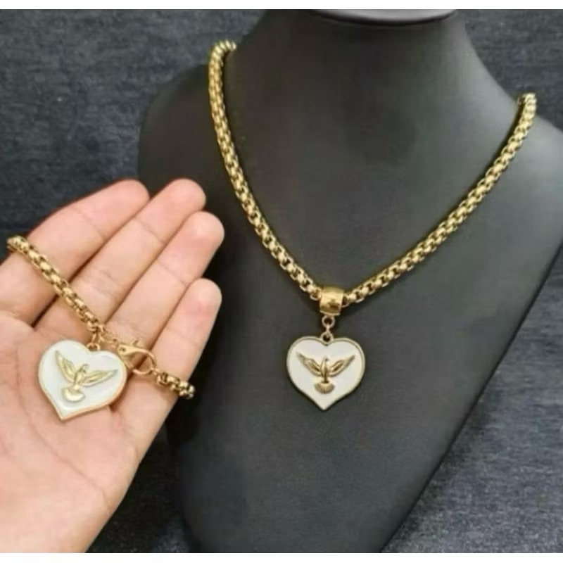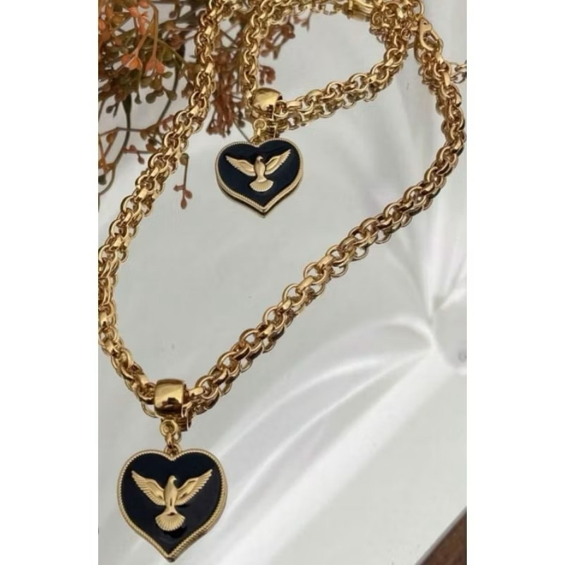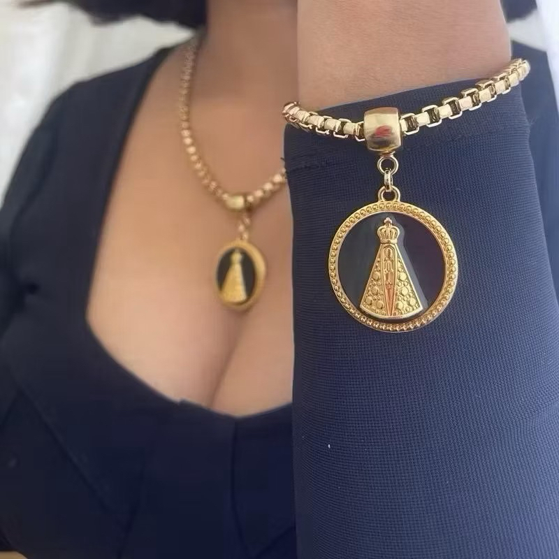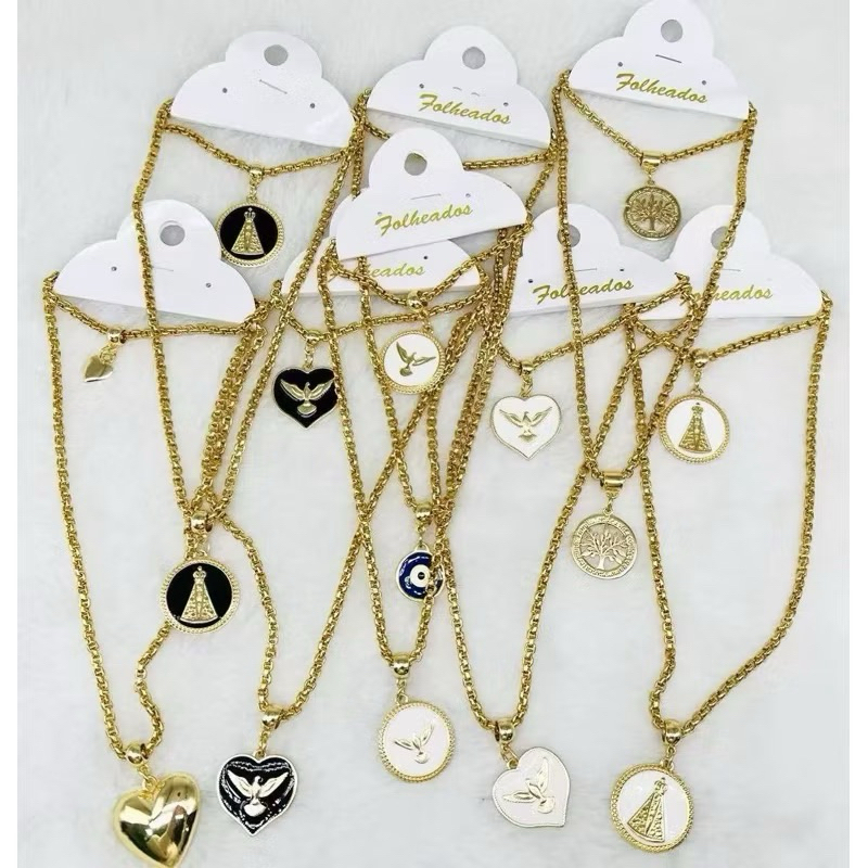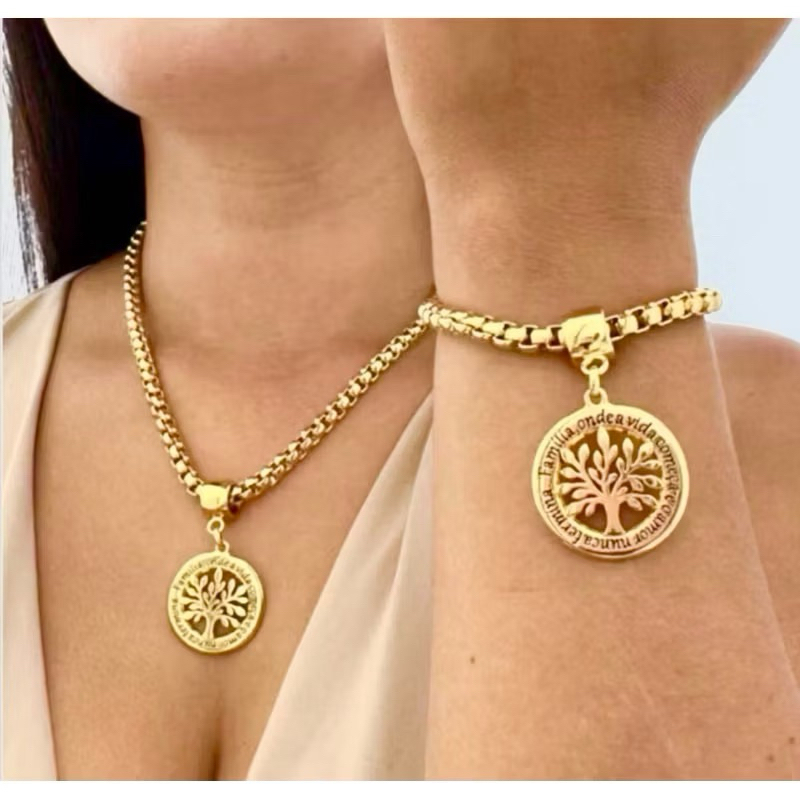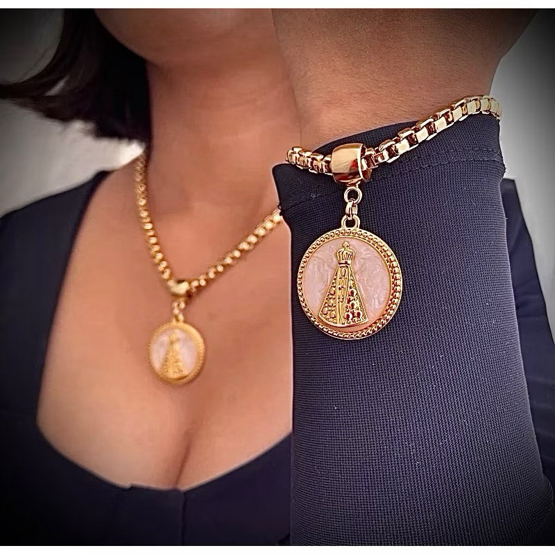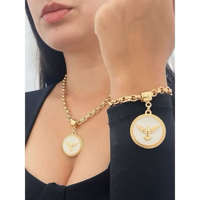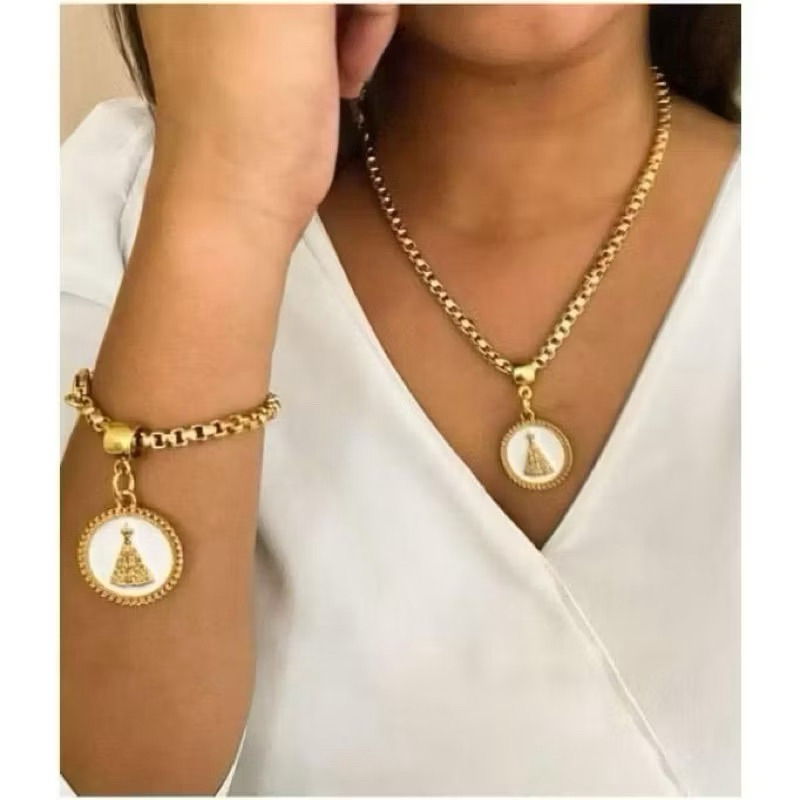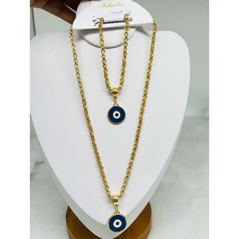Conjunto colar e pulseira corrente cordão veneziana pingente resinado moda feminina