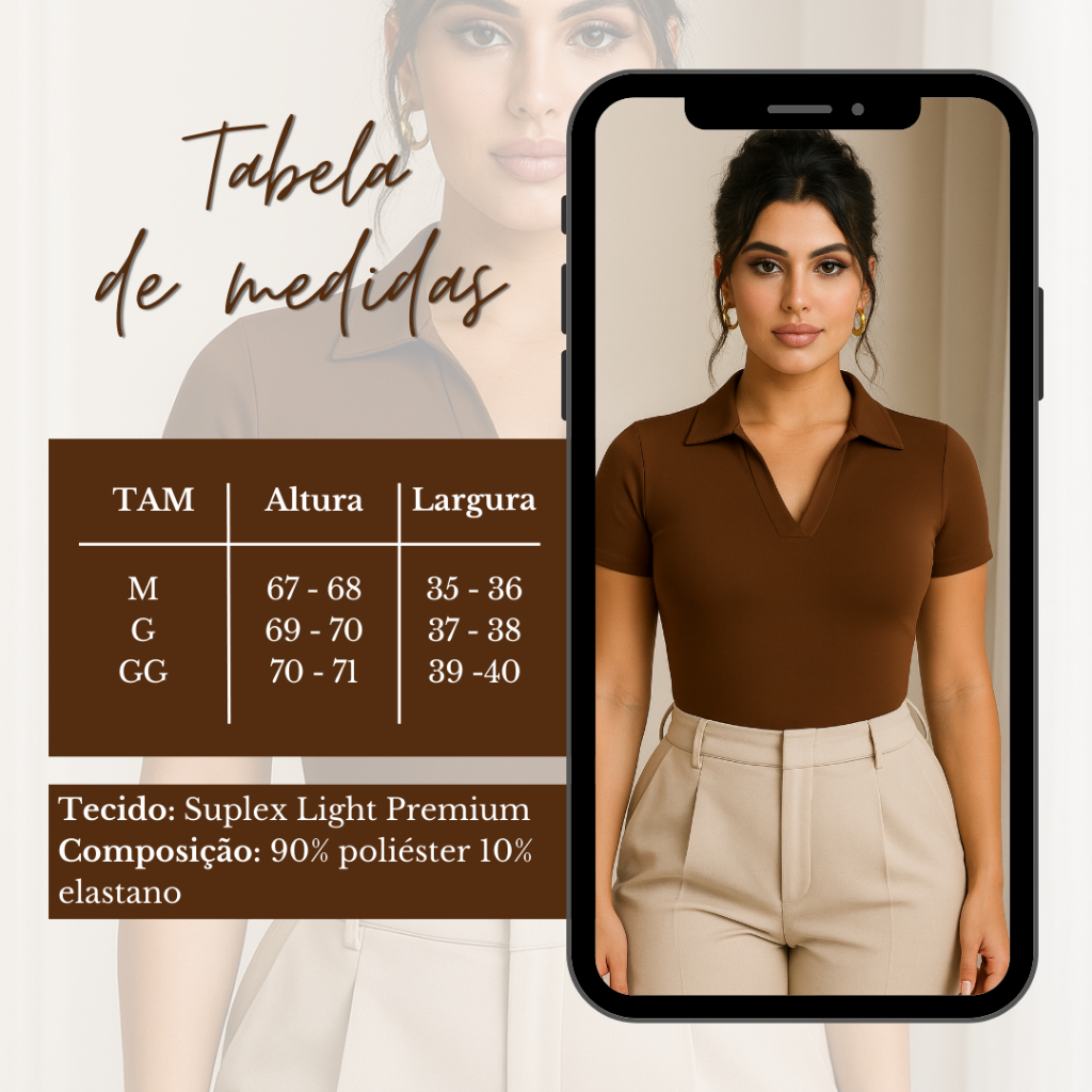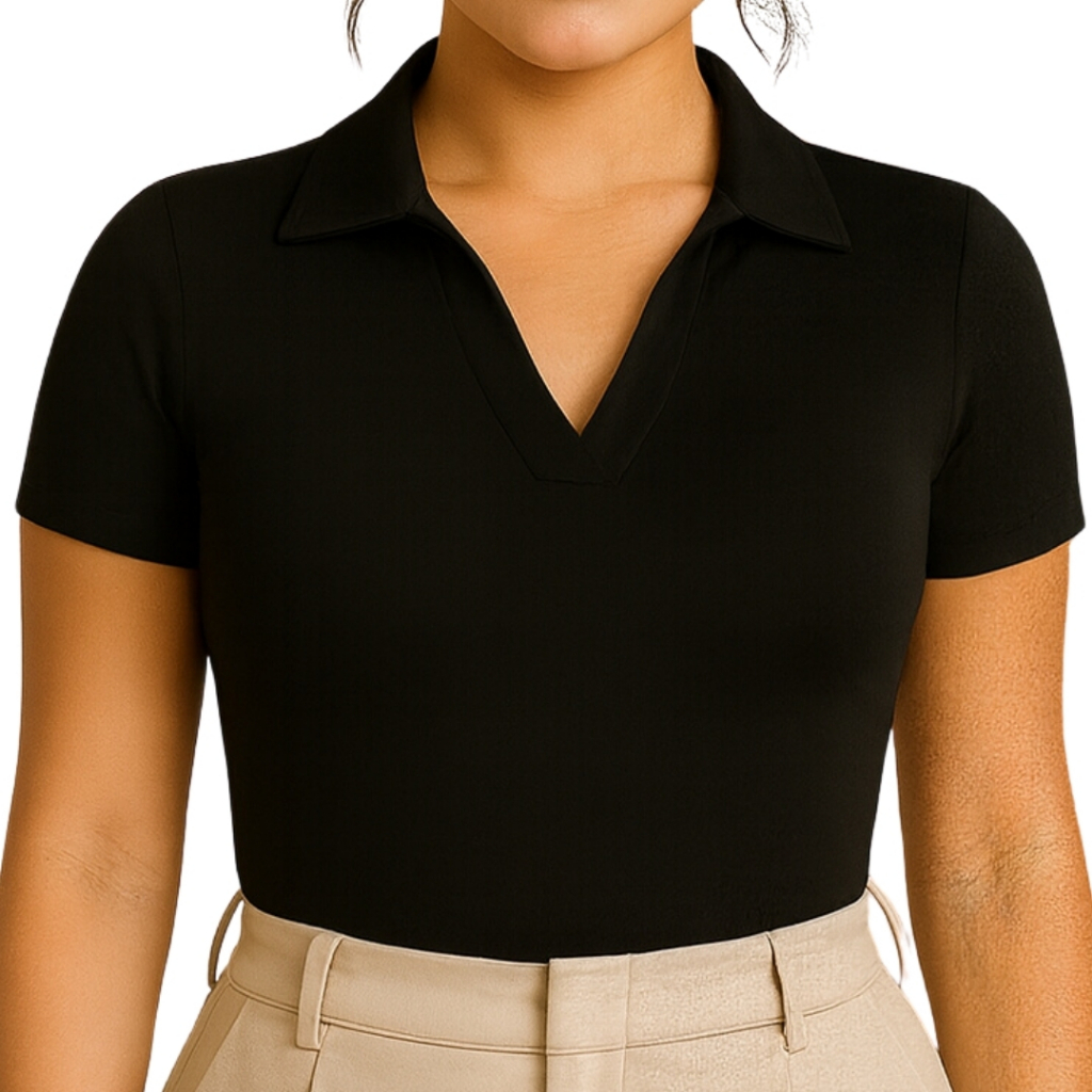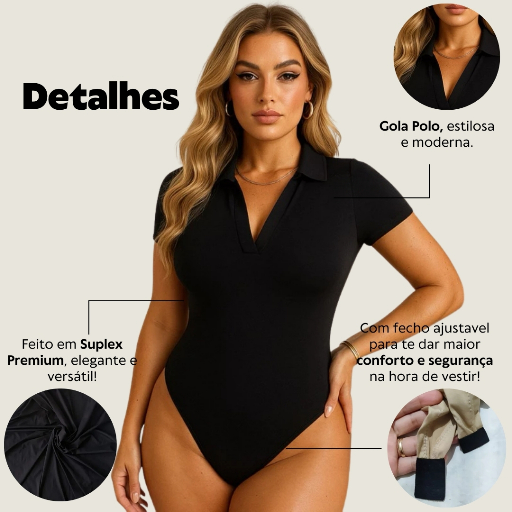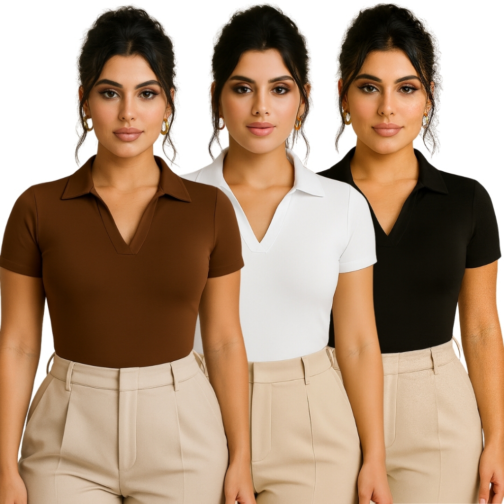 Kit 3 Bodi Polo Feminino Suplex Manga Curta Básico Premium Confortável Ajustado Gola Polo Elegante