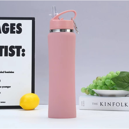 Garrafa Térmica 600ml Com Canudo Camada Dupla Com Alça Não Vaza Bebidas Quentes E Frias