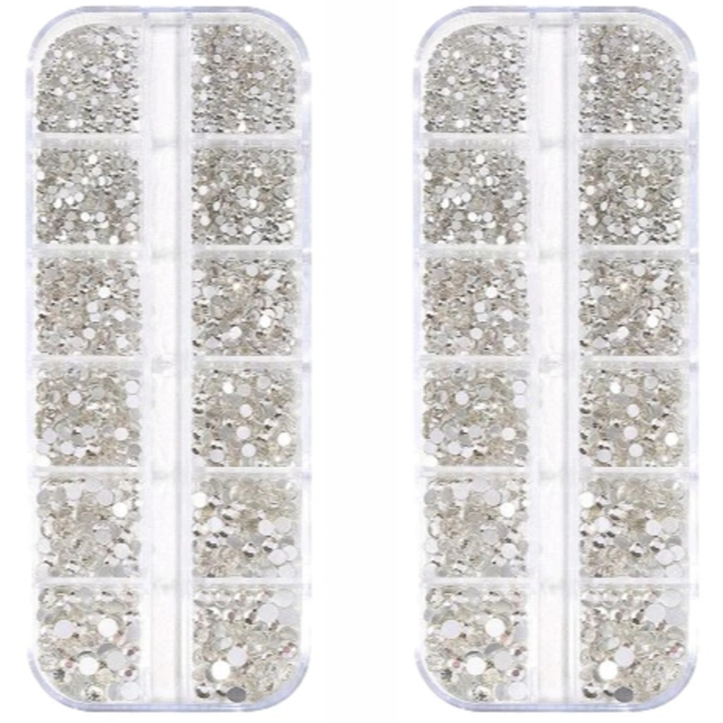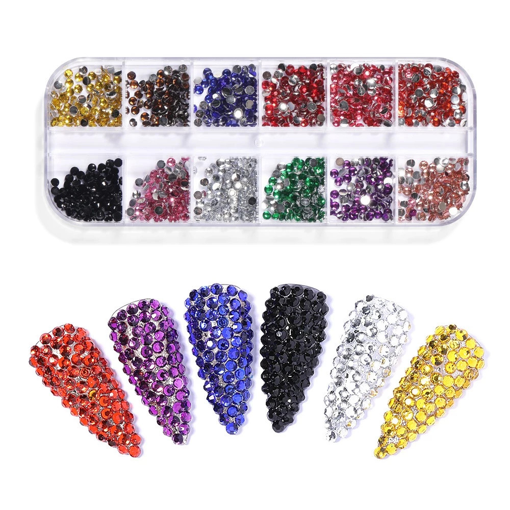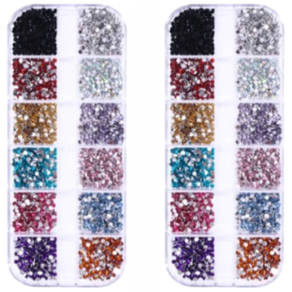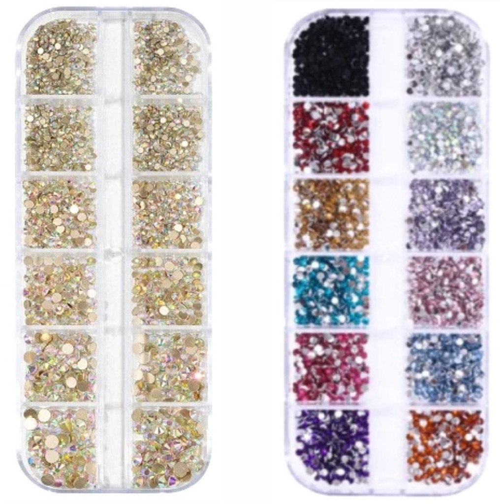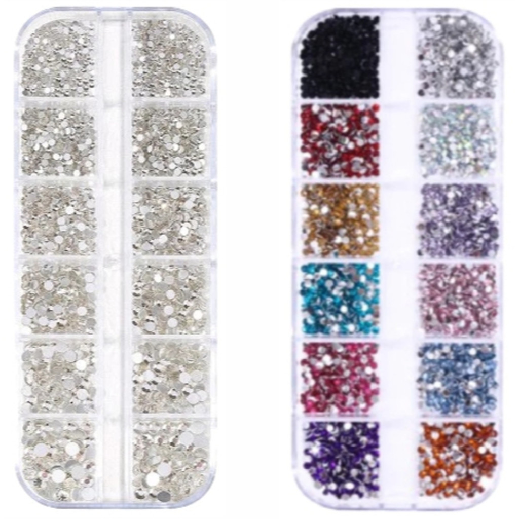 Caixa com strass coloridos/prateados/dourados, ideal para maquiagem e nail art - disponível em 3 cores.