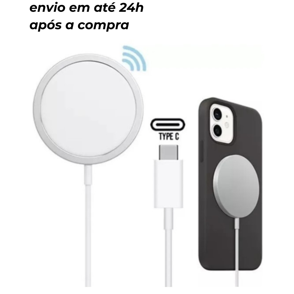 CARREGADOR PORTÁTIL INDUÇÃO iPHONE 8 PLUS, 11, 12, 13 -Wireless Sem fio 15w