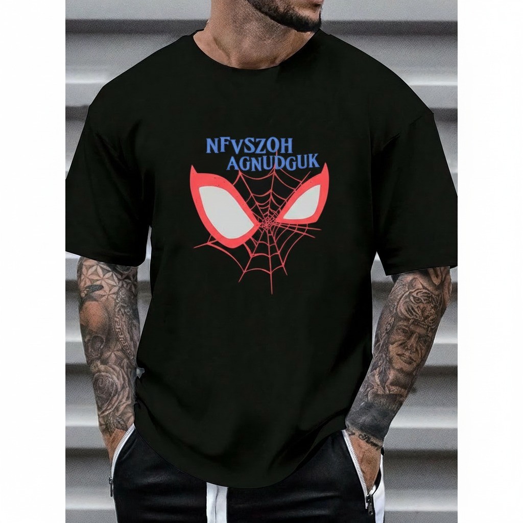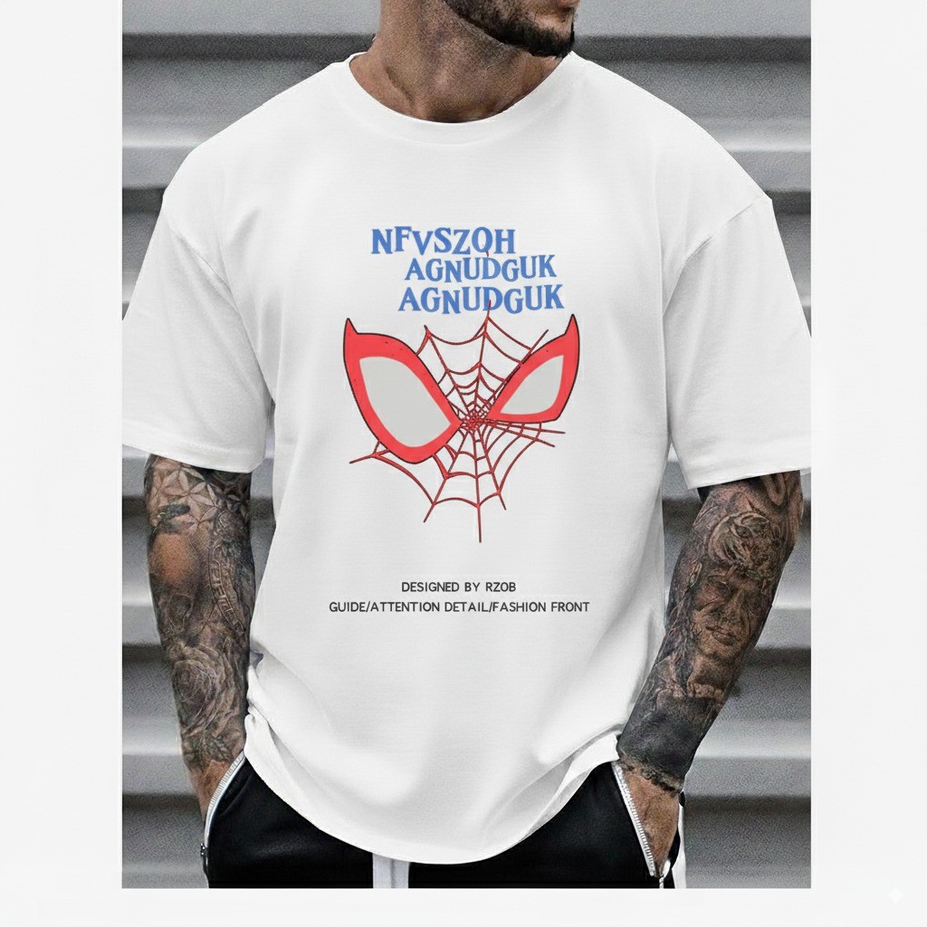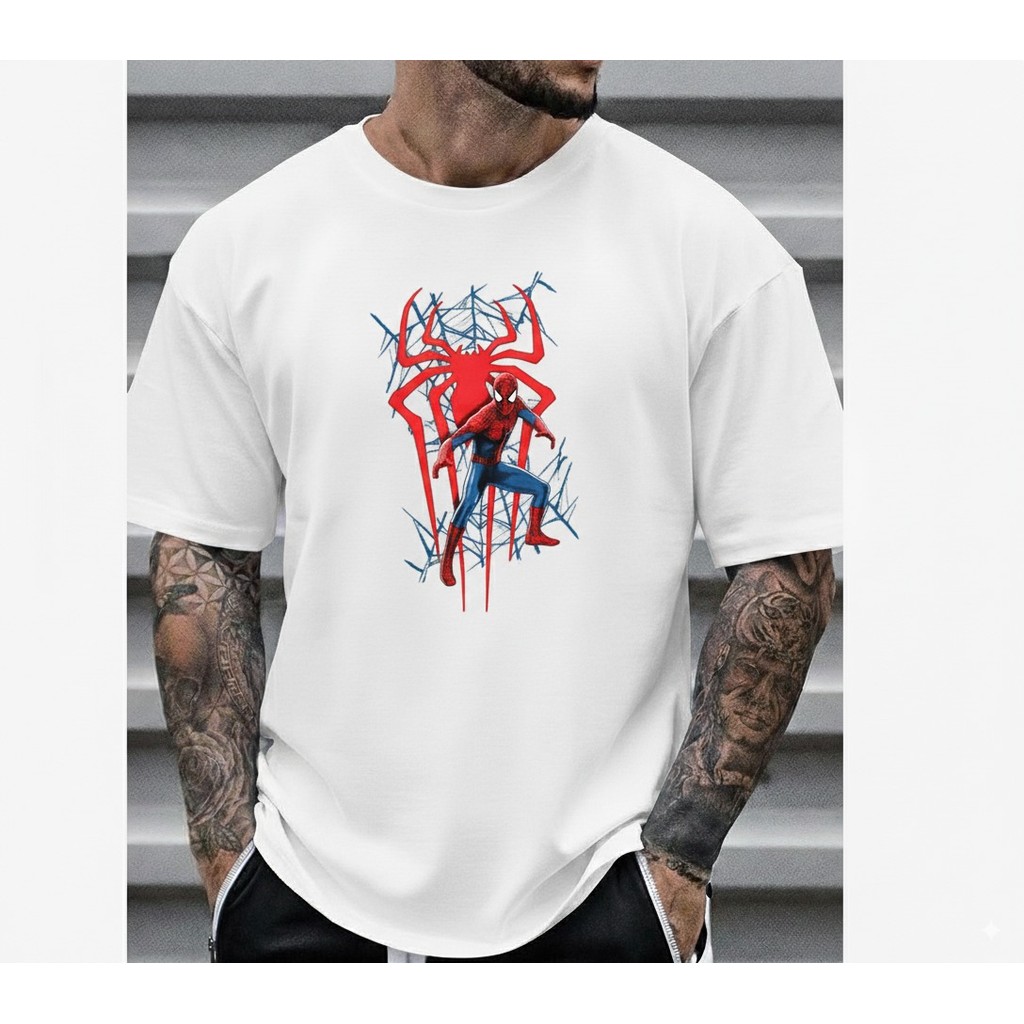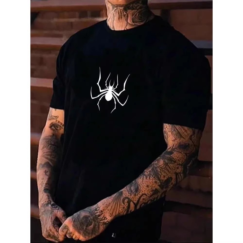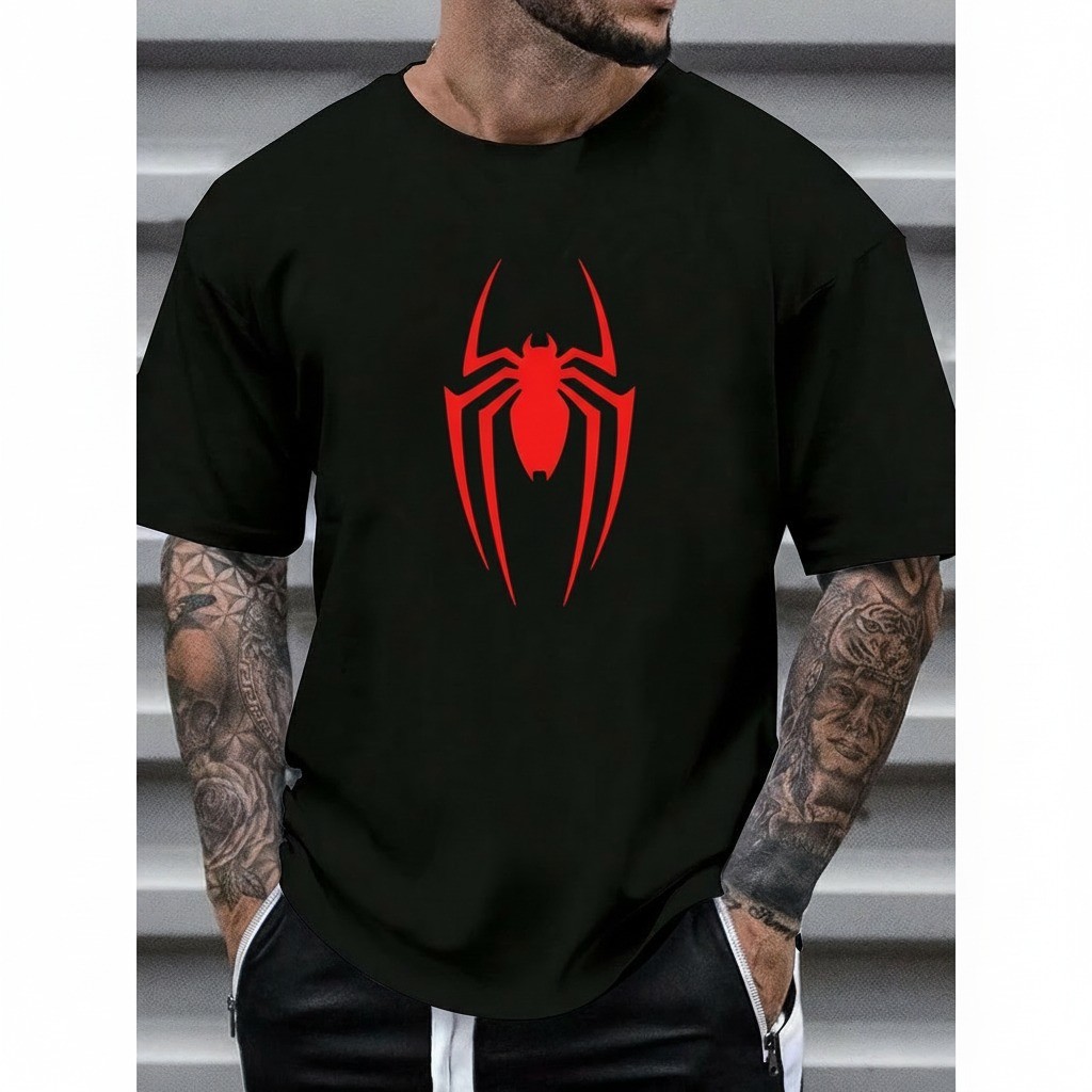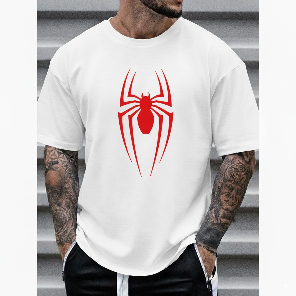 Camiseta Masculina Streetwear Oversized Estampa Teia De Aranha Vermelha Aranha Preta 100%Algodão