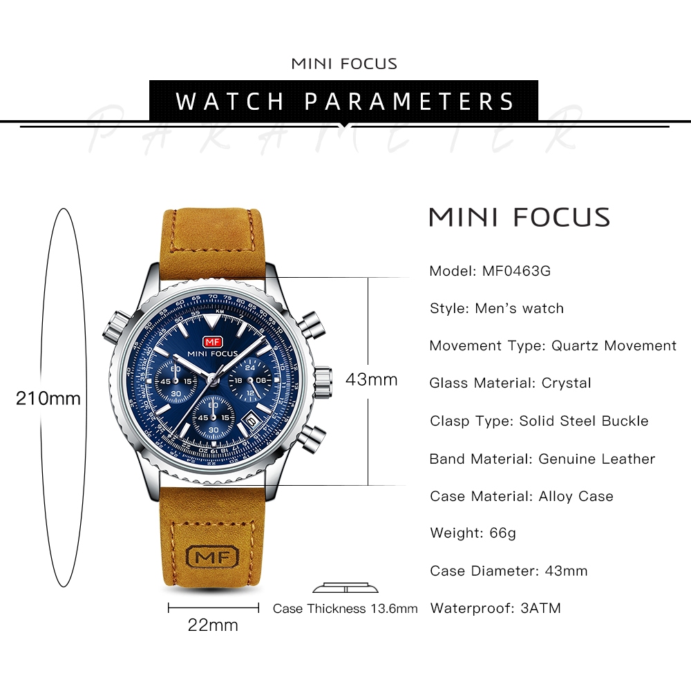 MINI FOCUS relogio de luxo original à prova d'água cronógrafo luminoso relógio masculino de quartzo