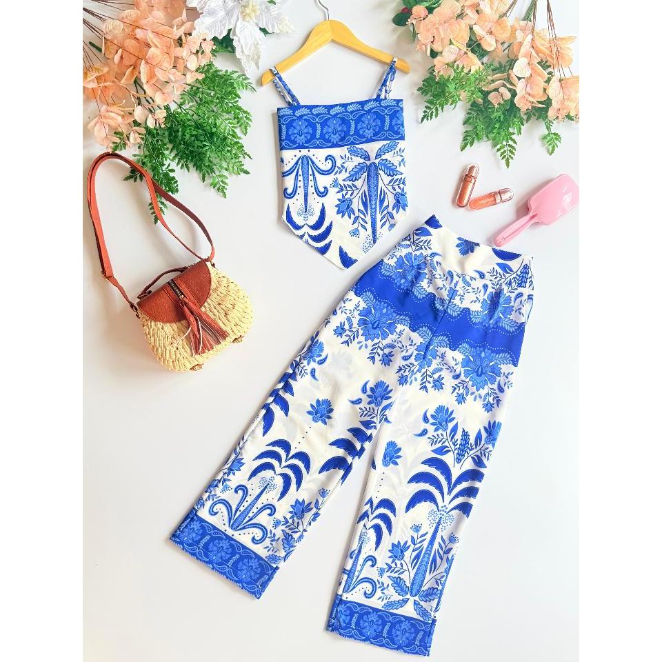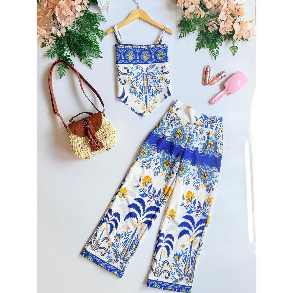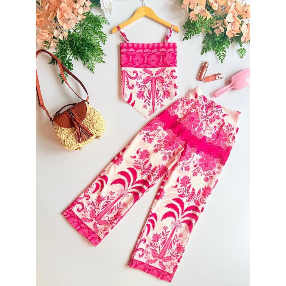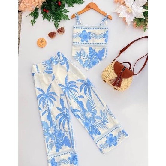 CONJUNTO JUVENIL FEMININO VERÃO CROPPED+CALÇA CREPINHO LEVE FRESCO 12-14-16