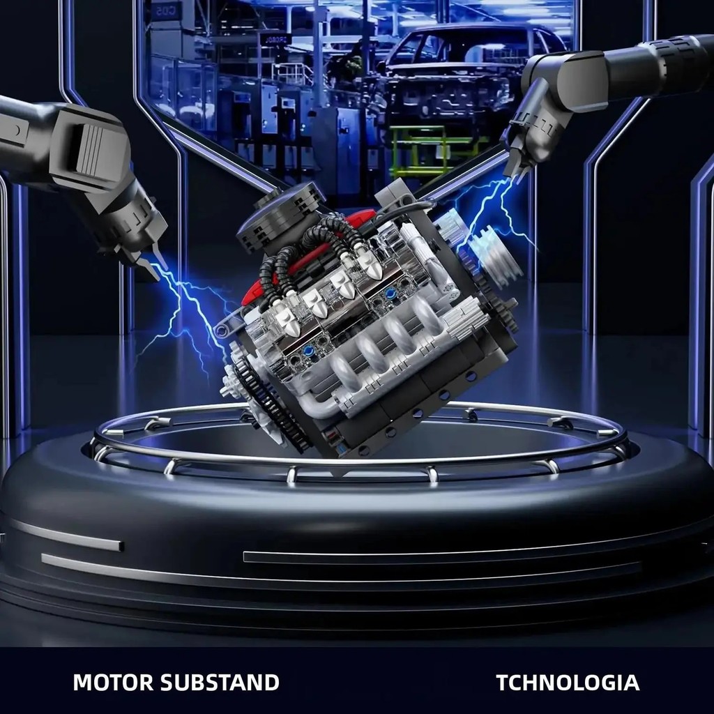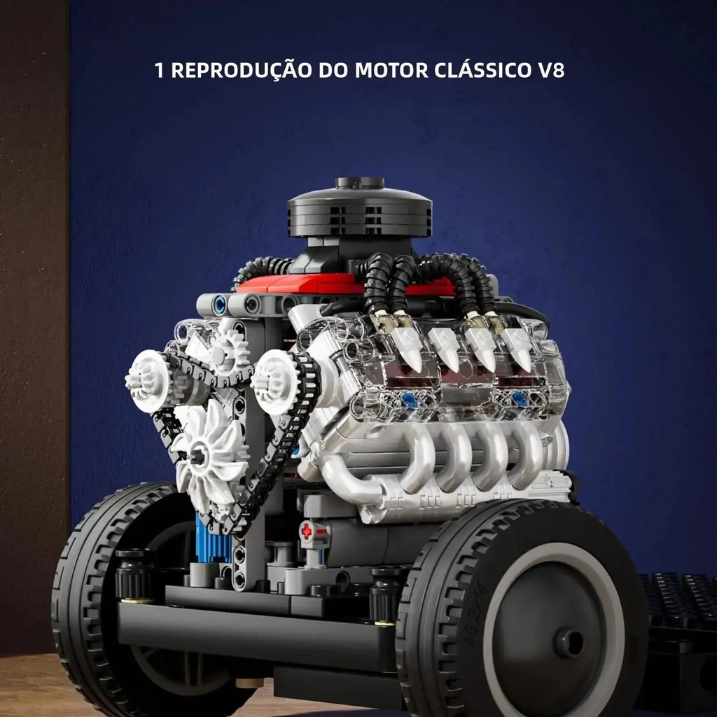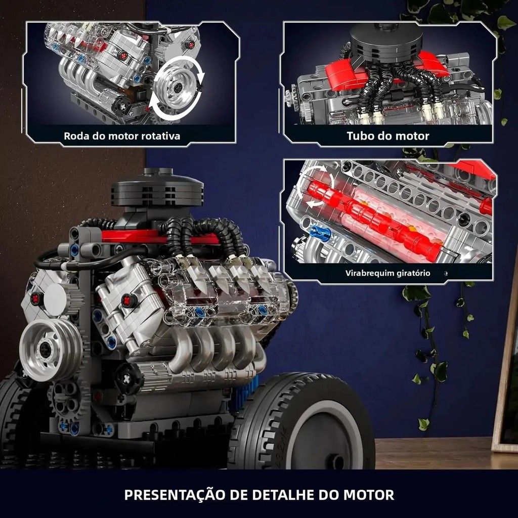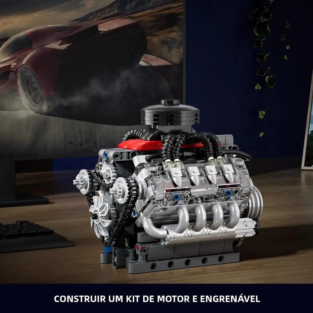 Mould King 10171 V8 Engine 487 Peças – Kit Blocos de Construção STEM DIY para Crianças e Adultos